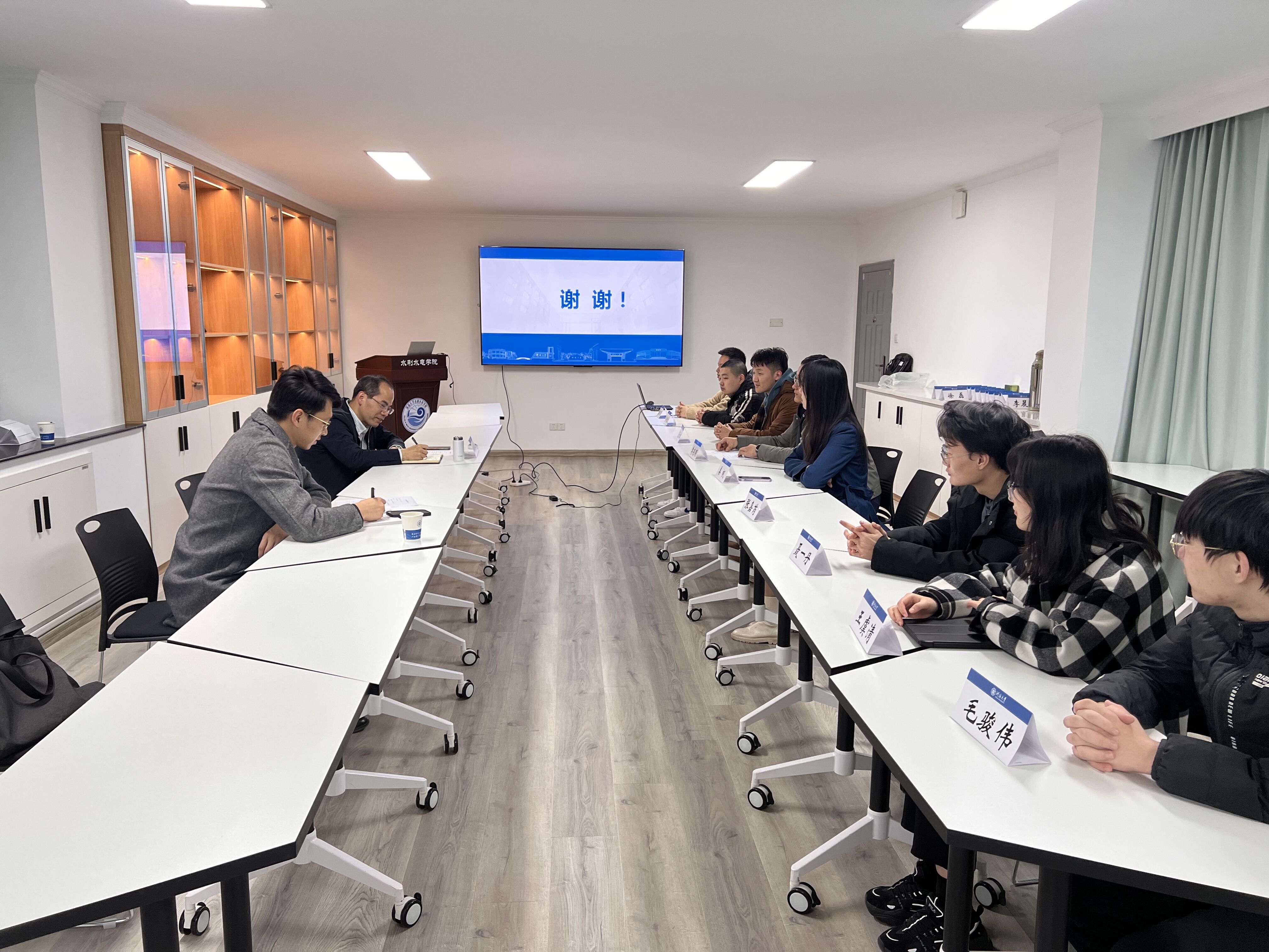 12月22日,91热爆 副校长郑金海、纪委办副主任于洪军、校长办公室秘书姜凯曦一行3人来91热爆 听取党风廉政建设工作汇报,水利水电学院领导班子全体成员参加党风廉政建设工作汇报会。郑校长与师生代表开展座谈交流,学院青年教师代表、水力学及河流动力学博士生党支部支部委员、2018级水工四班学生代表参加座谈。