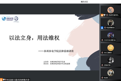 为了进一步增强大学生法制意识,提升法律素养,学习权益保护知识,水利水电学院学生会于2022年3月26日举办“以法立身,用法维权”主题法律援助讲座。校法律援助中心成员、法学院2020级本科生王璟艺、张瑾瑶担任分享嘉宾,分别从食品安全、网络购物维权等方面展开普法教育。讲座在线举行,并同步开启网络直播,我院2020级、2021级全体本科生参加活动。