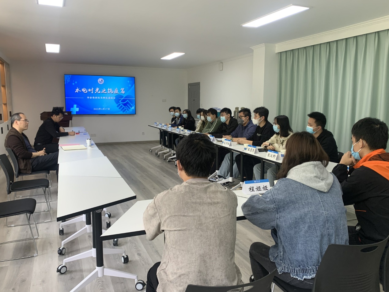 ,与水力学及河流动力学博士生党支部支委、2018级学生骨干、2018级水工4班学生代表开展座谈交流。
