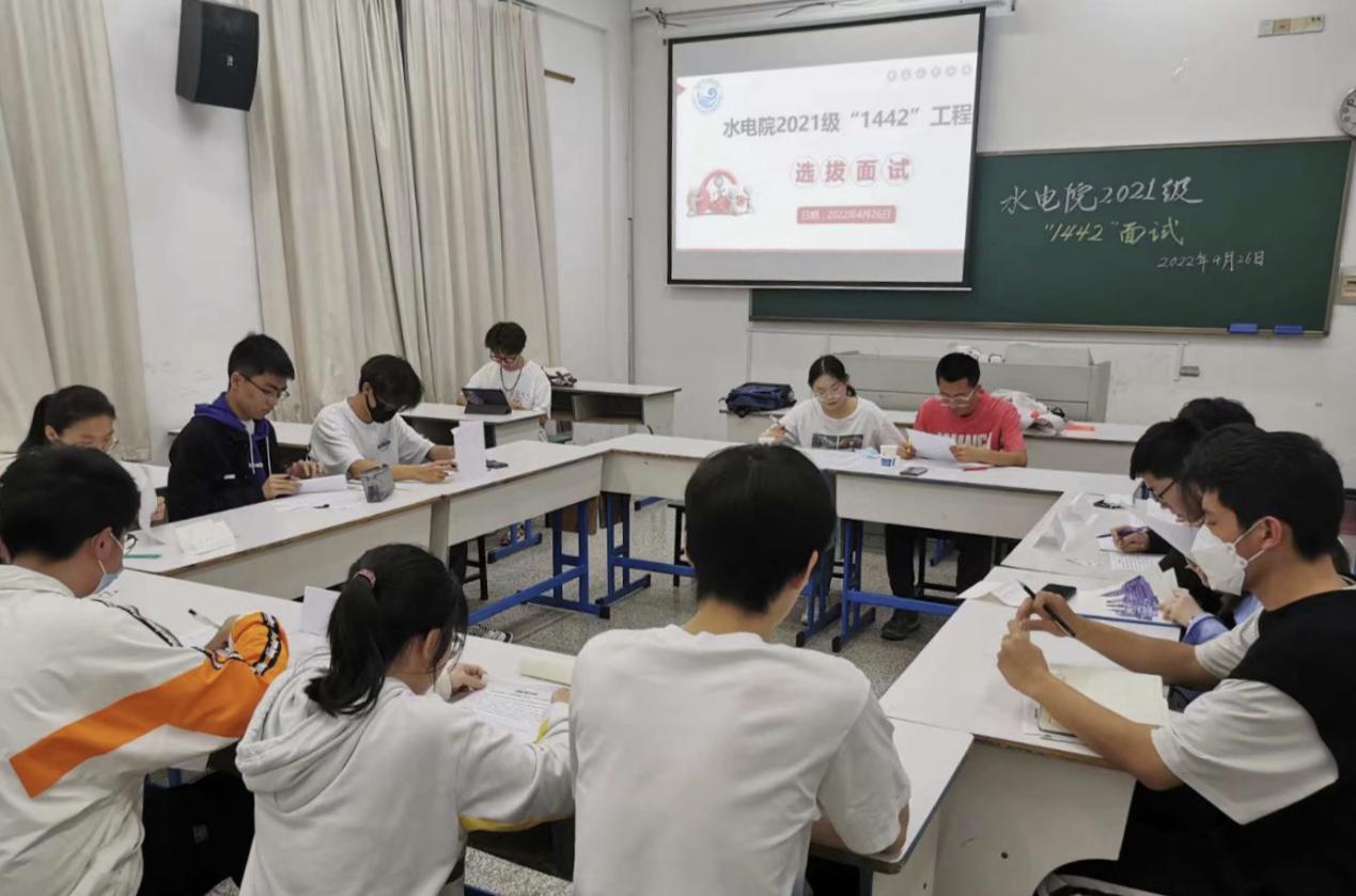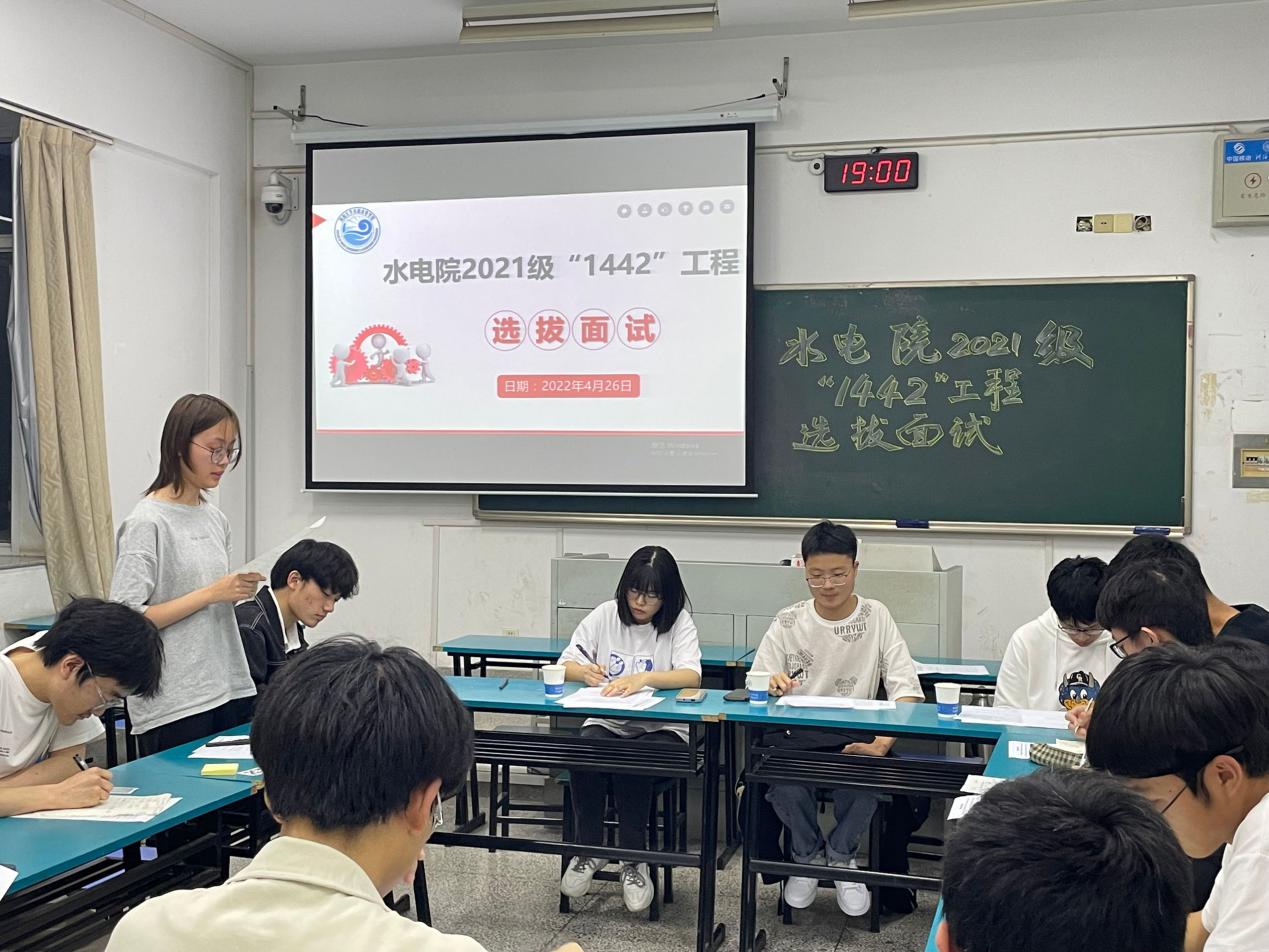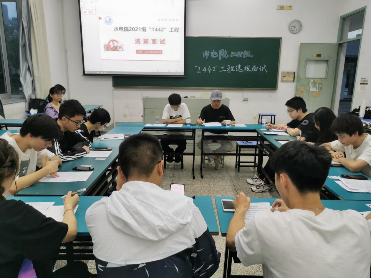 2022年4月26日晚,水利水电学院2021级“1442工程”选拔面试在致高楼举行。无领导小组讨论开始后,每人5分钟阅读题目,随后按顺序发言,发表自己的看法。此后是20分钟的自由讨论,同学们畅所欲言,各抒己见,既阐释了自己的观点,又求同存异、达成共识。最后由小组发言代表向评委陈述小组的观点。