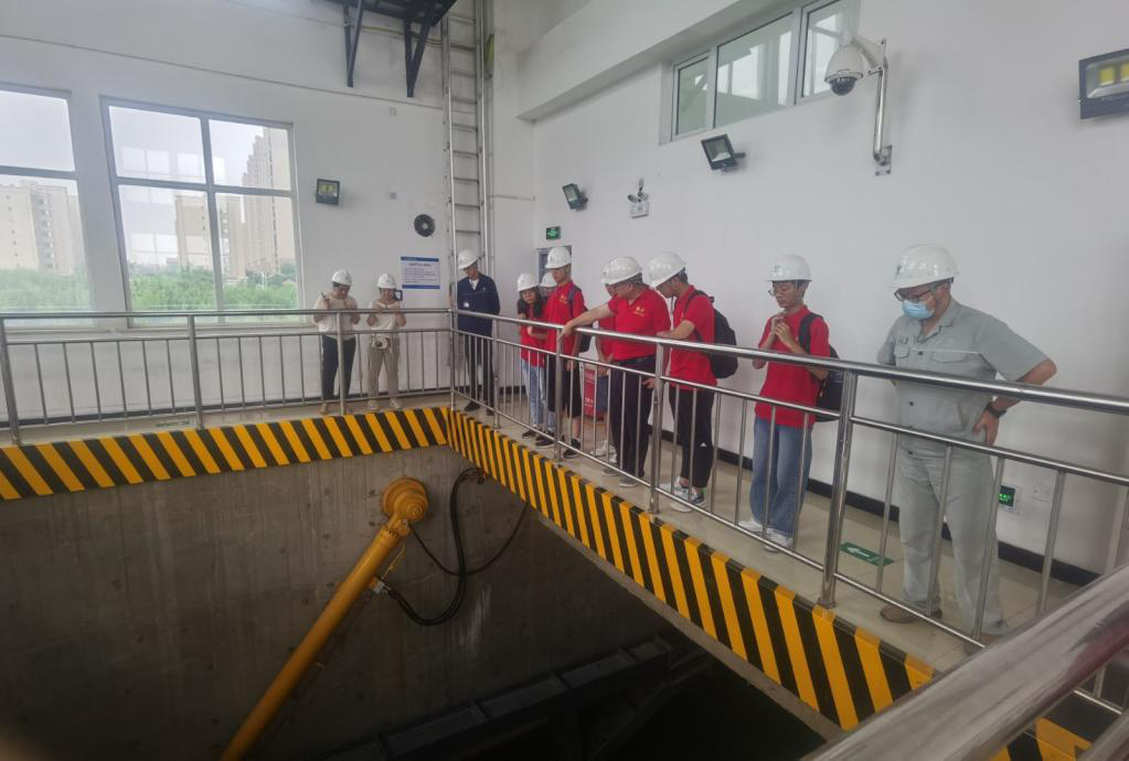 调研团在负责人带领下参观了邢台市中国南水北调七里河倒虹吸工程。七里河倒虹吸工程由进口渐变段、进口检修闸、管身段、出口节制闸、出口检修闸、出口渐变段组成,节制闸为弧形闸门,闸站管理高度自动化,为“一渠清水安稳北送”扎牢了安全的篱笆。