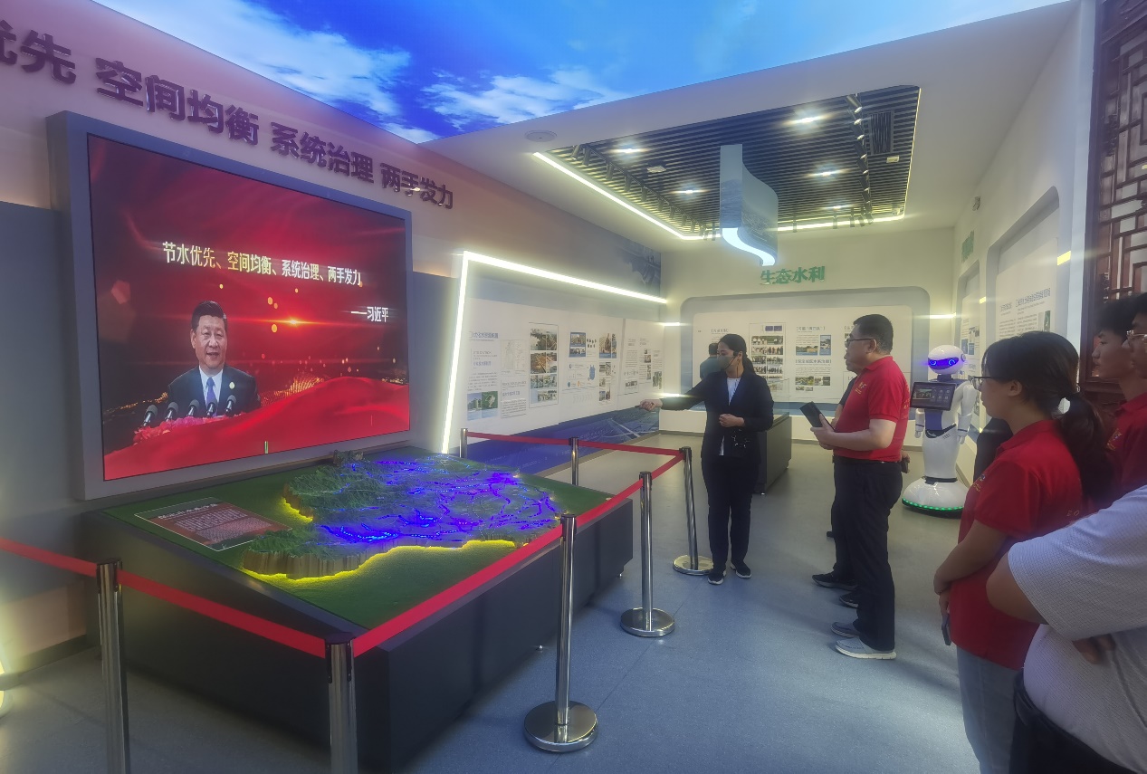 7月12日,为弘扬水利精神,调研团来到了保定水利博物馆,探寻水利的发展历史,进行了一场穿越时空的旅行。在讲解员的带领下,从尧封唐河以鲧治水、大禹治水到习近平治水十六字方针,实践团成员学习了早期人类治水智慧以及近代治水方针的发展,体会到以大禹为代表的公而忘私、艰苦奋斗的精神和尊重自然、因势利导的理念。在保定水利博物馆,实践团成员同一代又一代水利人进行交流,“忠诚、干净、担当,科学、求实、创新”新时代水利精神扎根于实践团成员的内心。