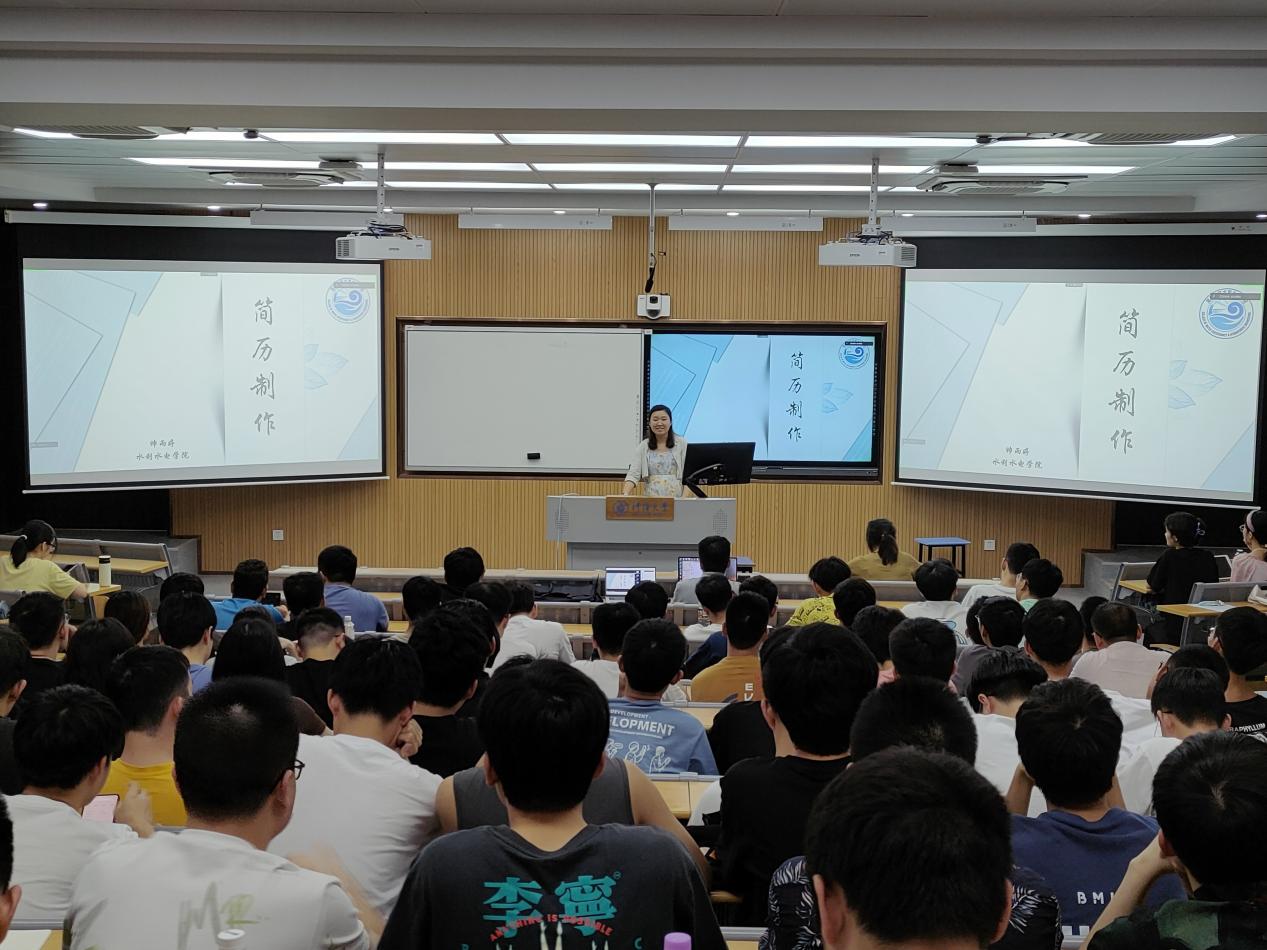 帅雨婷老师针对目前全国就业形势、学校就业政策、个人简历的撰写以及单位面试中的注意事项开展详细解读。她强调三点:一是把握就业时机。秋招是就业的黄金时期,应该把握机会,主动参加各类招聘宣讲会,积极投递简历。二是摆正就业心态,应当稳扎稳打,坚定信念,勇于到基层锻炼成长。三是注重提升个人技能,要立足实际,契合企业用人需求扬长避短,展现最好风采。
