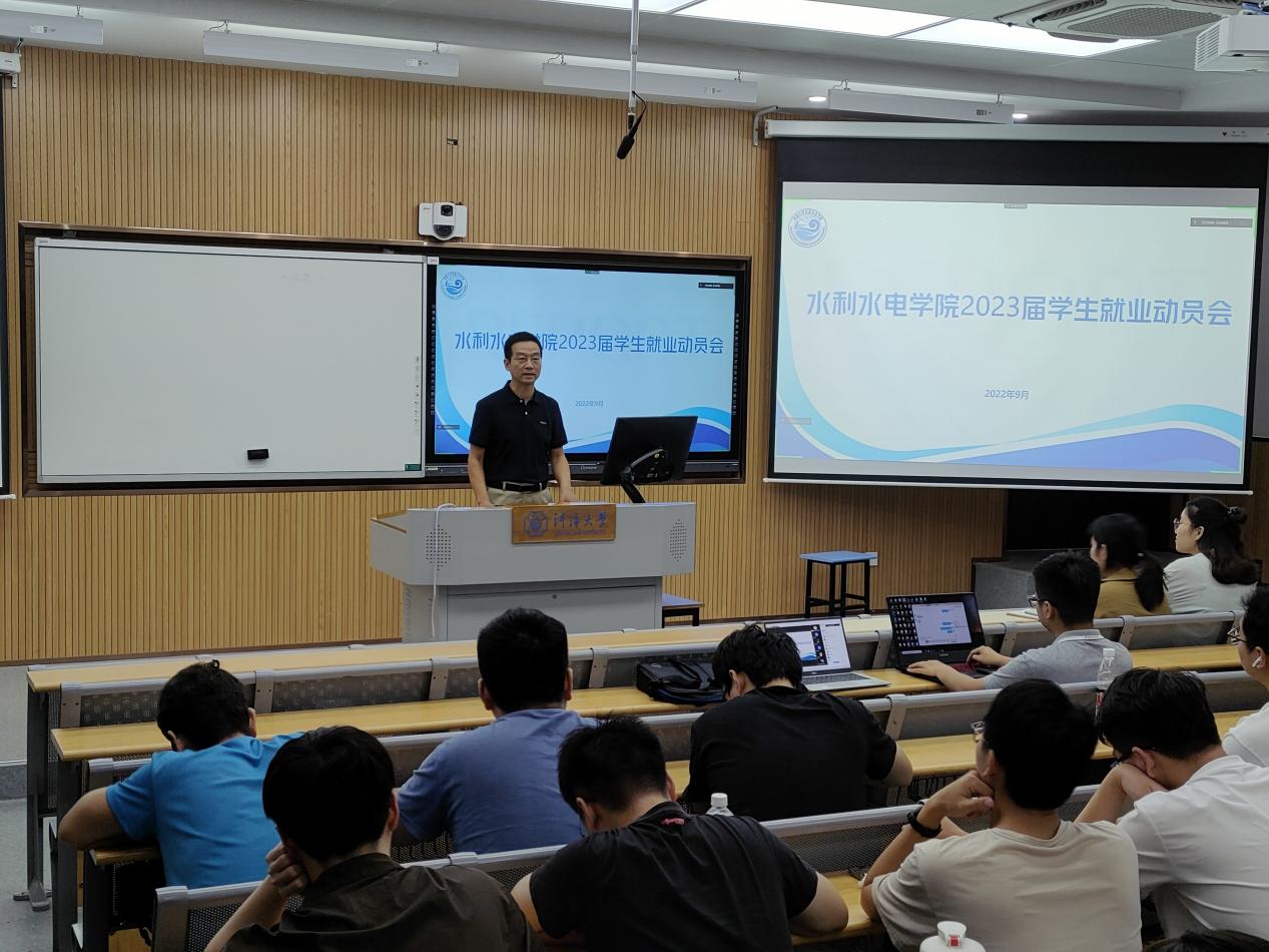 院党委书记娄健研判就业形势、疏导就业心理、分享就业经历,从三个维度寄语毕业班学生,做全面就业动员。他指出,就业是大事也是小事,就业关乎社会民生,大家无需过分焦虑;就业是学院的事也是个人的事,学院始终全力服务各位毕业生,提供各类保障资源,大家更要主动出击;就业是急事也是缓事,就业选择是短期内的决定,也是长远规划下的选择。最后,他鼓励大家应当珍惜青春大好时光,明确未来发展目标,提高就业工作重视程度,追求卓越。