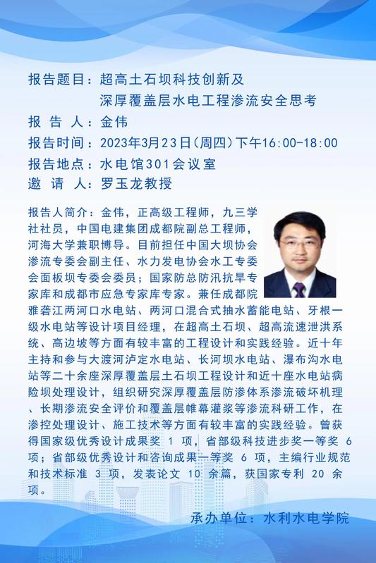 学术报告会 | 超高土石坝科技创新及深厚覆盖层水电工程渗流安全思考