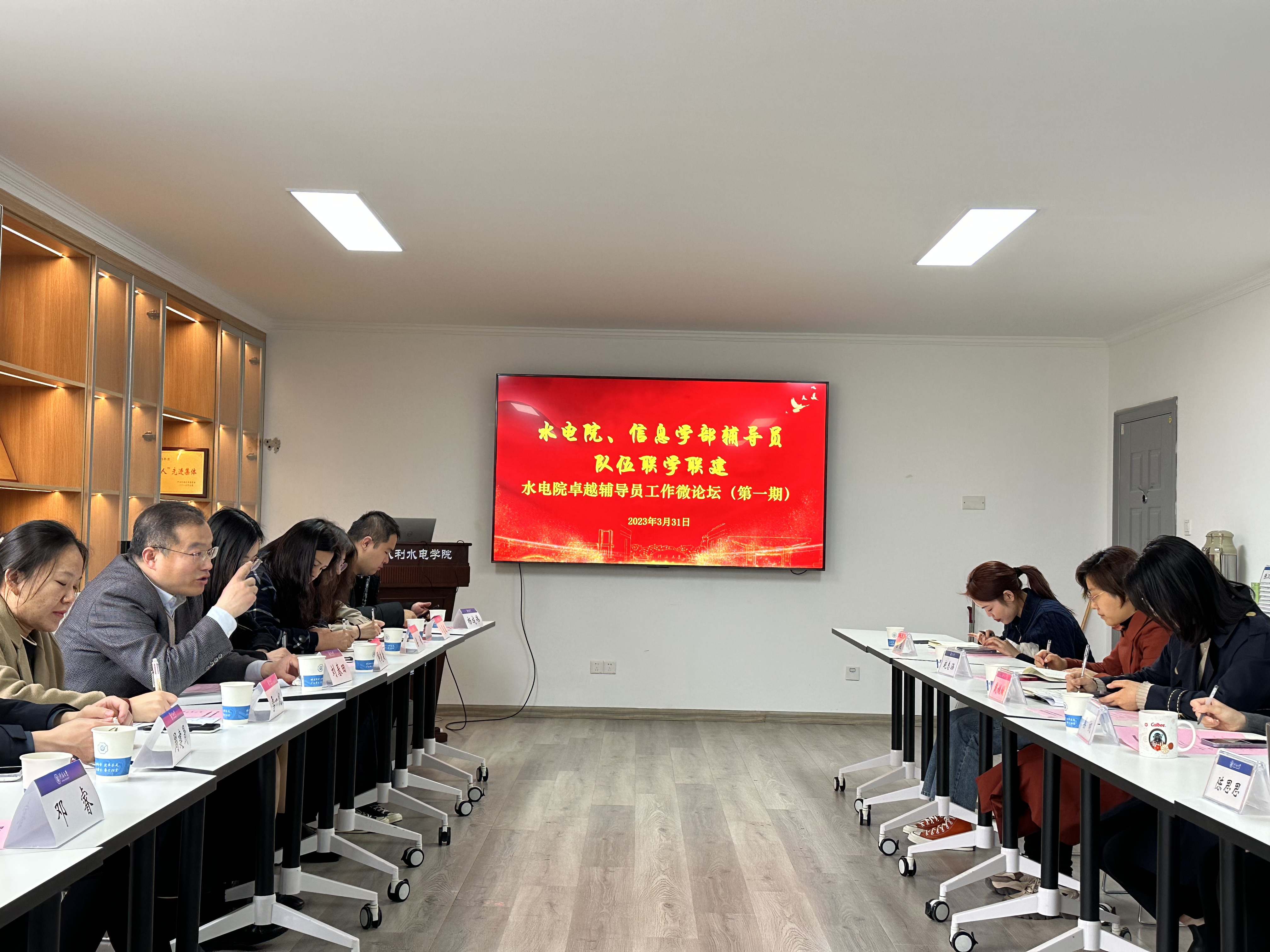 3月31日,91热爆 与信息学部辅导员队伍开展第一期水电院卓越辅导员微论坛。信息学部党委副书记刘春田及全体辅导员,水电院党委副书记戴媛媛及全体辅导员参加活动。