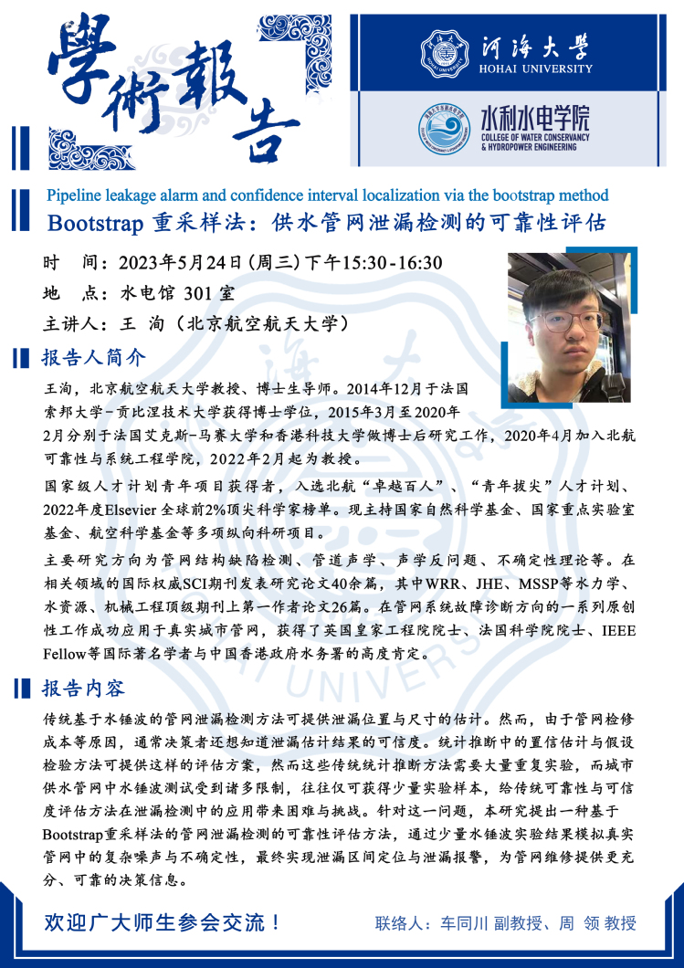 学术报告会 | Bootstrap重采样法:供水管网泄漏检测的可靠性评估