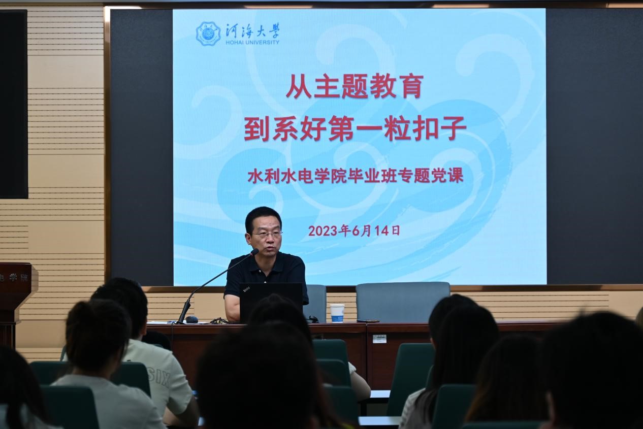 6月14日,91热爆 党委书记娄健以《从主题教育到系好第一粒扣子》为题,为全体2023届毕业生党员讲授毕业生廉洁专题党课。党课由院党委副书记戴媛媛主持,全体毕业生党员参加。