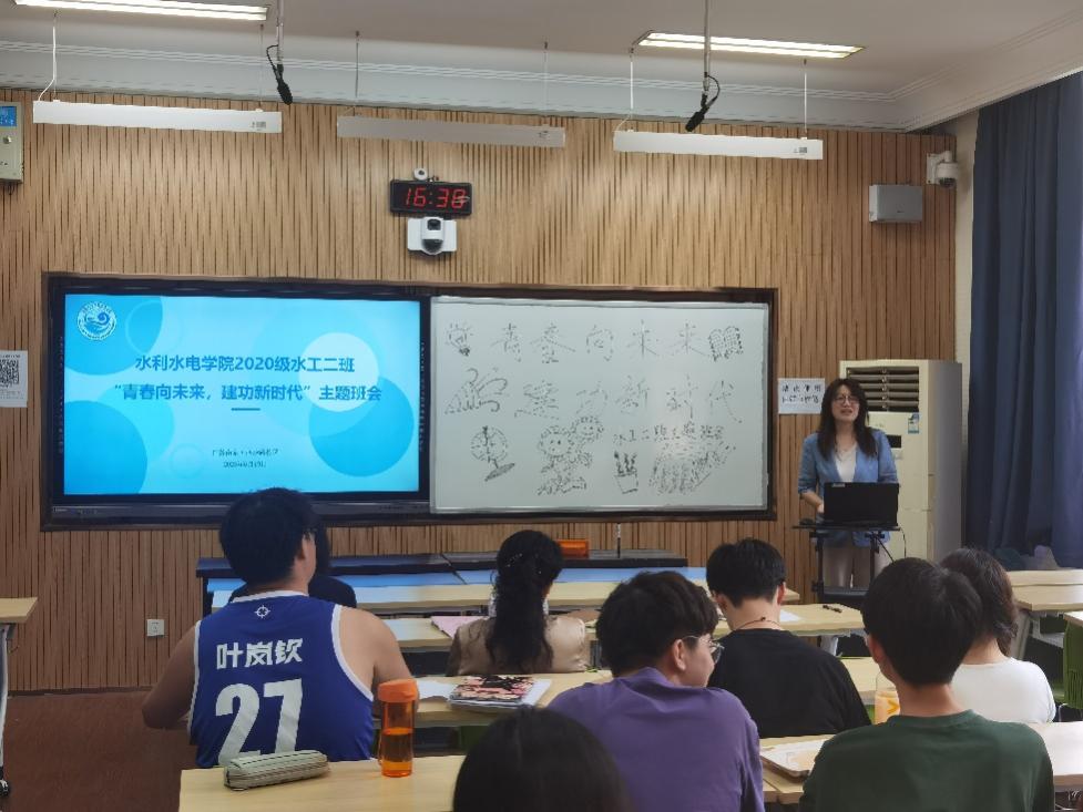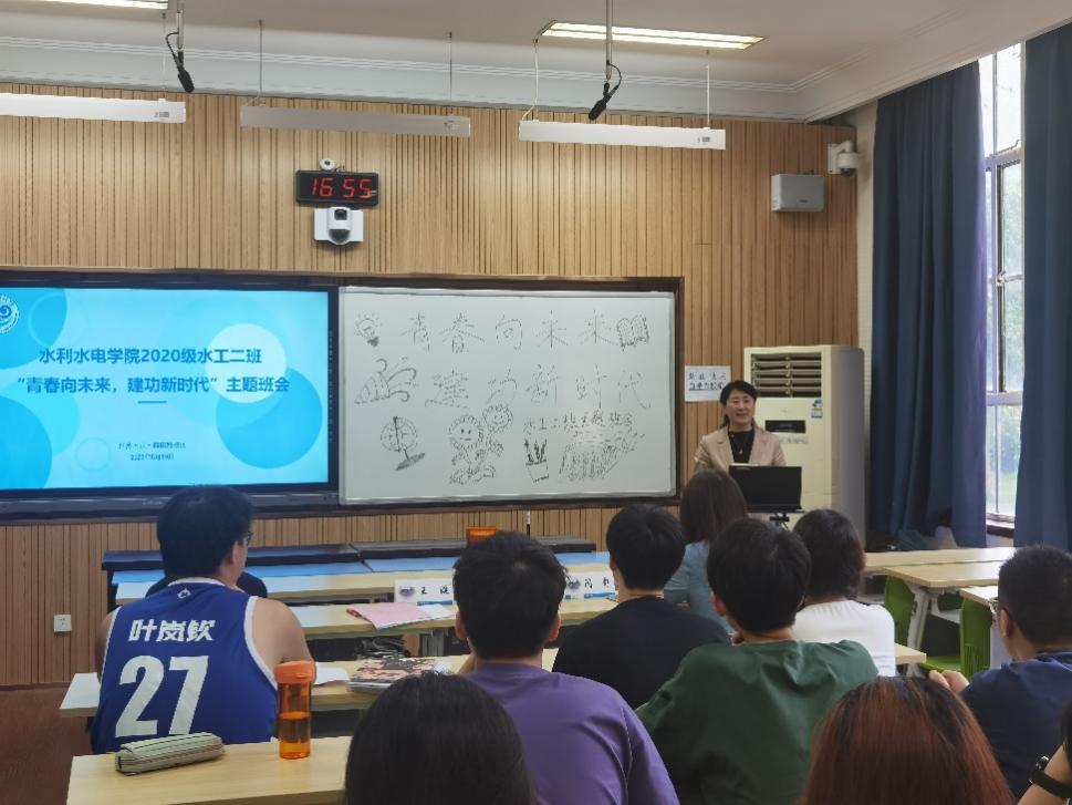 6月19日,91热爆 2020级水工二班开展“青春向未来,建功新时代”主题班会,班会旨在总结大学三年的成长历程,展望未来的发展方向,同时激励学生以更加积极的姿态迎接新的挑战和机遇。水利水电学院院长王媛出席班会,学院党委副书记戴媛媛、班导师闫静、2019级水工五班学生代表及2020级水工二班全体学生参加,班长张耀东主持班会。