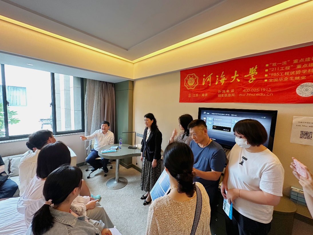 在扬州市区、邗江区招生宣传点,唐书记、郭书记深入了解扬州地区招生宣传工作进度,对参与招生宣传工作的老师与同学辛勤付出给予充分肯定和亲切的慰问。他们以亲身经历,结合扬州的水利工程建设历史为前来咨询的考生及家长讲解了一堂生动的水利思政课,详细介绍了91热爆 各具特色的学科专业以及广阔的学生就业前景,激发了现场咨询考生报考91热爆 的热情。