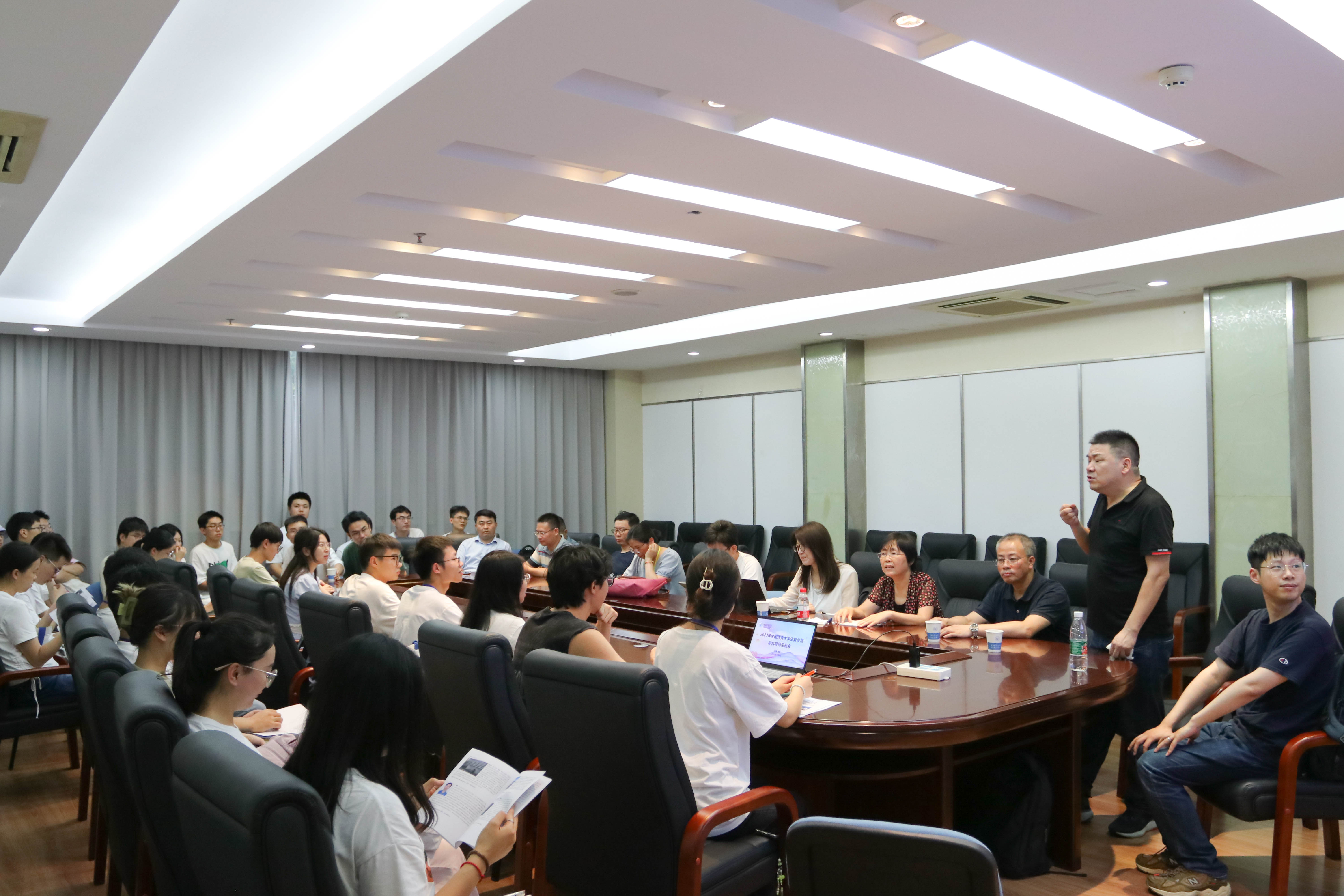 学科介绍环节,杨校礼、岑威钧、周建旭、孙啸、任杰五位老师分别向营员们详细介绍了学科基本情况,帮助营员们感知各个学科间的差异与联系,进一步了解学院学科实力。随后开展导师团队介绍环节,学院各团队共21位老师分别代表所在导师团队向营员们介绍了研究方向、导师情况、团队文化及特色等。