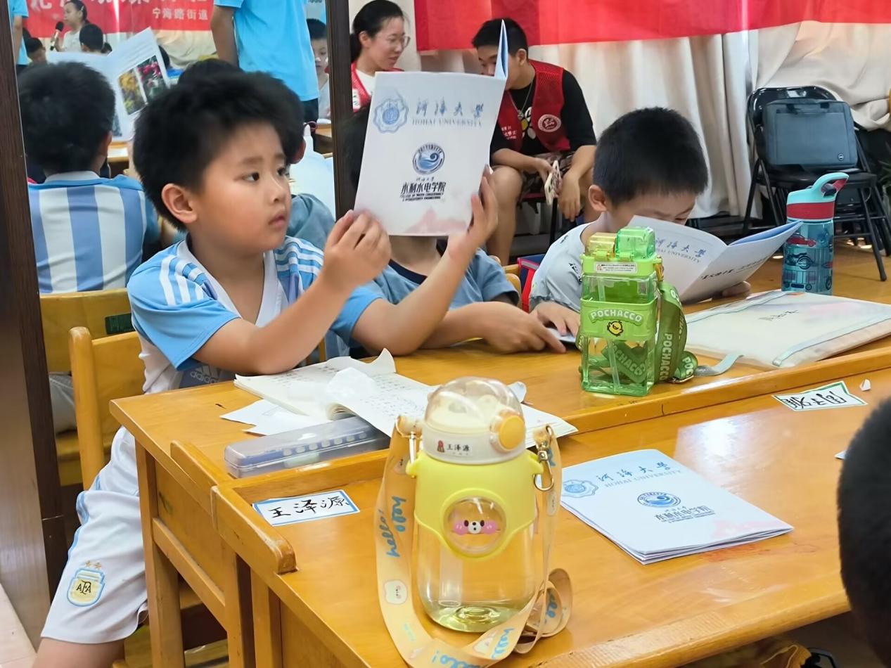 近日,水利水电学院“星火燎千里,江河泽众生”井冈山精神志愿实践宣讲团前往鼓楼区宁海路街道为民服务中心,开展暑假社会实践志愿宣讲活动。此次活动通过宣讲井冈山精神的形式向街道的小朋友们弘扬革命精神以小游戏的方式,帮助小朋友更好地了解井冈山时期的革命历程培养爱国爱党的意识。