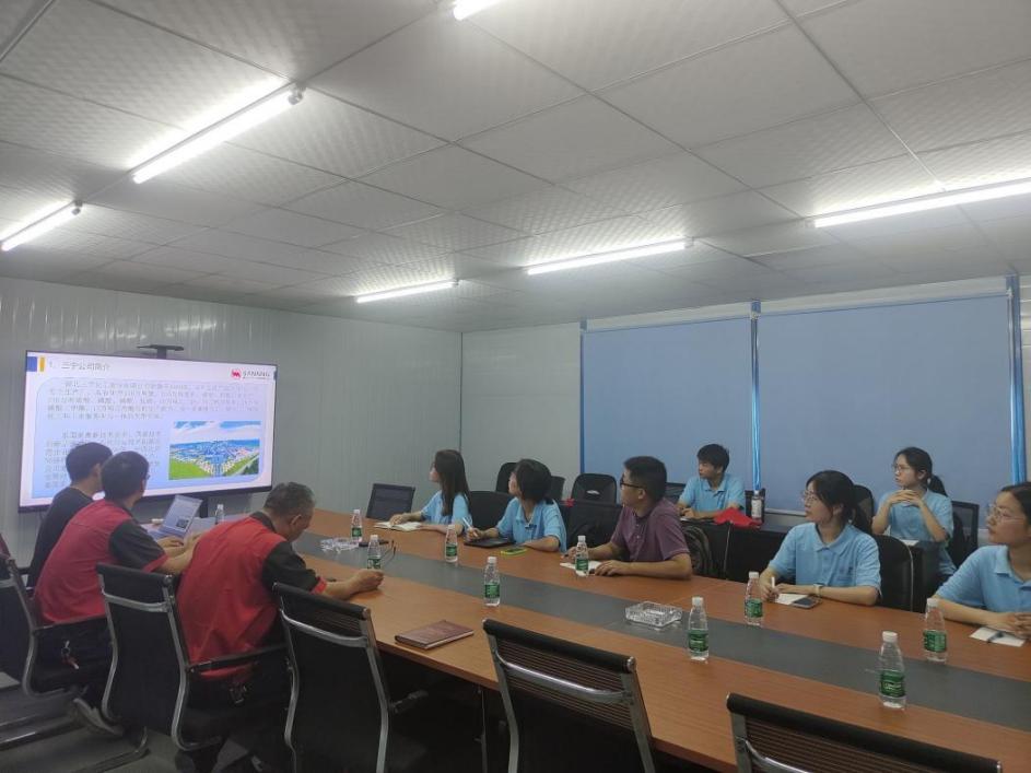 座谈会上,团队成员与肖林波工程师等人进行面对面座谈交流。工作人员从三宁磷化工产业链概况、磷石膏资源库中的回水利用、WTP半水石膏的直接利用及磷石膏的综合利用途径四个方面对三宁化工厂磷化工板块展开介绍并提出改进磷石膏大宗固废的利用方法。