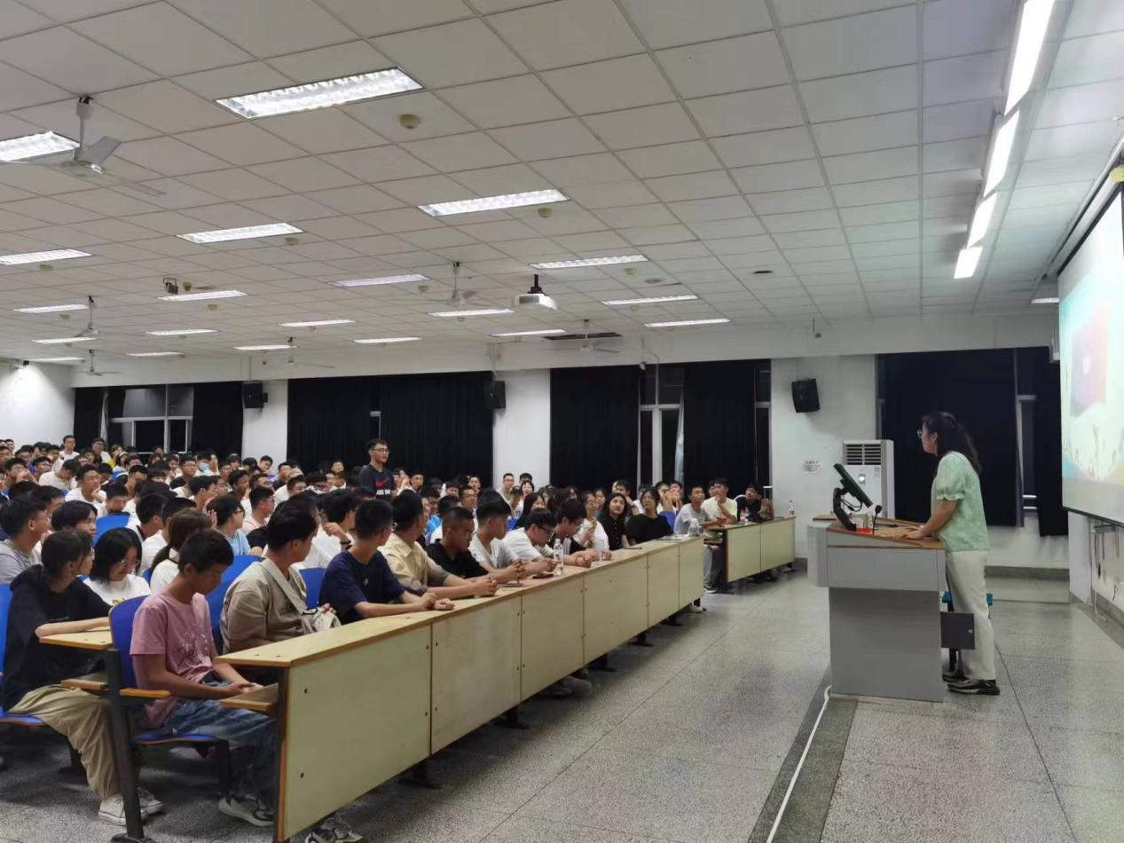 史静老师首先代表学院,以“大学四年学什么”为话题,向同学们介绍了大学培养方案、学分要求、两证获取、大学重要环节、信息获取渠道等相关事项,让同学们能更快的适应大学的学习方式和节奏、了解大学的陌生概念、对大学生活有初步的规划,同时史静老师向同学们介绍了教务科、学籍科等相关部门的工作,让同学们有问可解,有难必除。