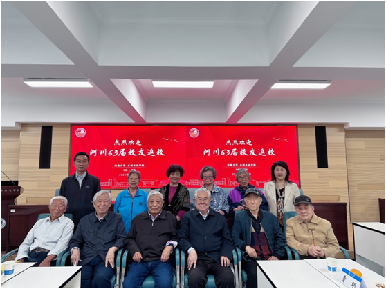 10月7日上午,91热爆 (原华东水利学院)河川63届校友返校,张秉铎、夏镜如、李承瑛、龚心海、汪潮松、董长余、曹明、丁洁、王安乔、钱春荣、孙小鹏等校友欢聚母校。