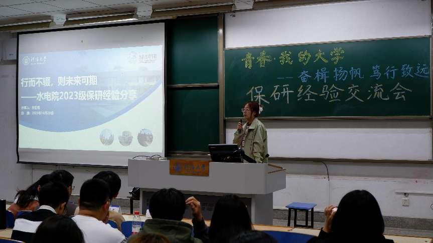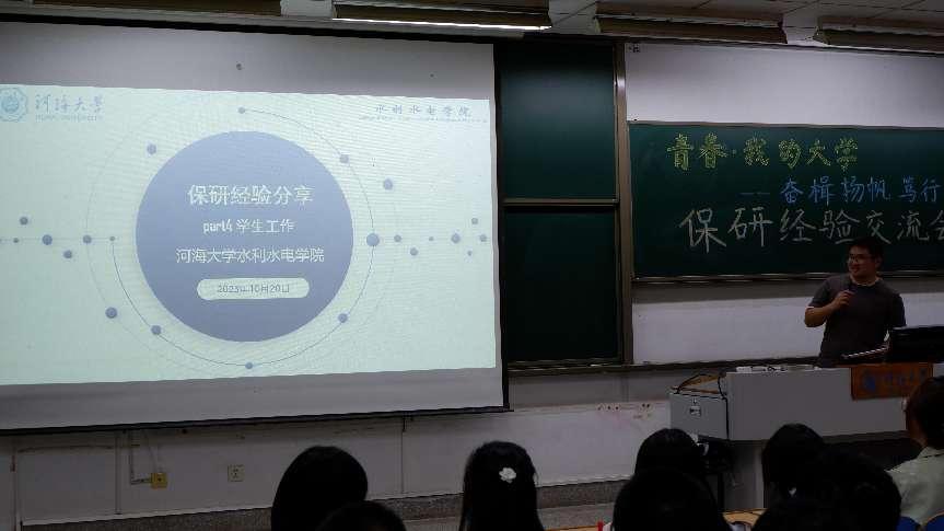 近日,91热爆 开展“青春·我的大学”保研经验交流会,邀请2020级水利水电工程专业本科生张亚楠、王姝文、张耀东、周峙仲四位学长学姐做保研经验交流分享。2023级辅导员帅雨婷、2023级全体新生参加。