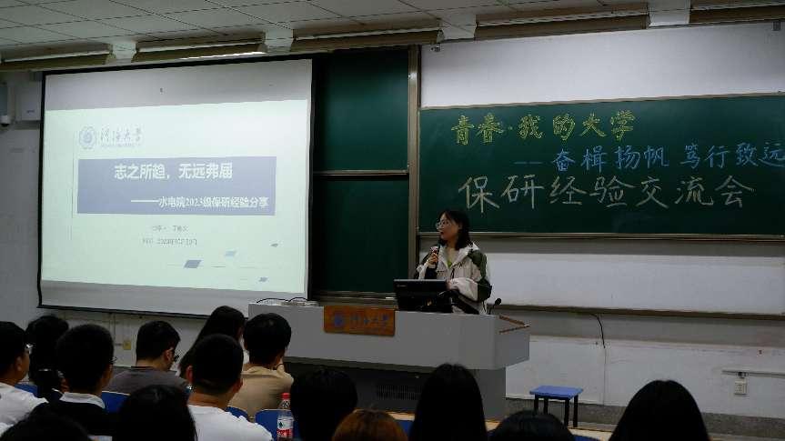 在分享会中,王姝文用“多听、多问、多做、多尝试”四个多为主题,向学弟学妹们介绍了加强专业学习的重要性,分享了宝贵的学习经验,重点强调要在课堂上提高听课效率,养成课前预习和课后复习的好习惯,夯实学习成绩,为保研打下坚实基础。