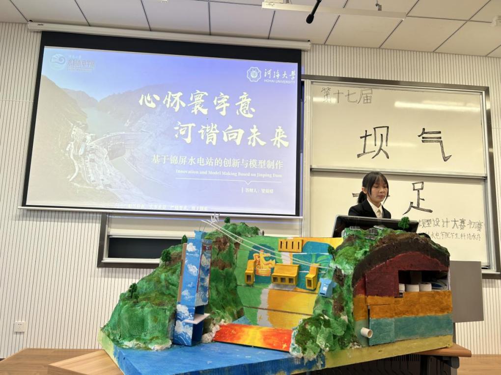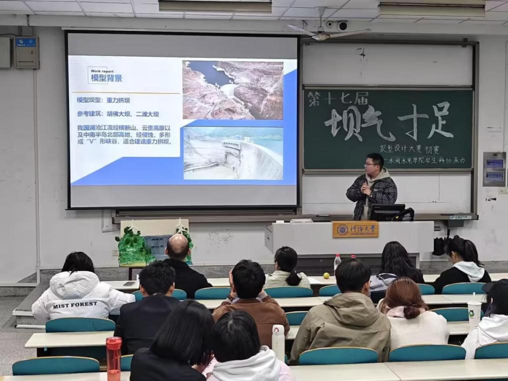 参赛团队依次上台展示精心制作的大坝实体模型,结合PPT、三维建模、动画片段,选手们生动形象地向评委和观众们展示出了作品的设计思路、创新亮点、主题寓意等信息。现场展示出制作精巧的重力坝、实用简约的支墩坝等,详细展示了作用各异的、、升船机、鱼道等,并在坝型外观和美工上融入中华传统元素,带来专业知识与艺术美学的双重享受,体现了水之子传承接续前辈力量建设国家水利事业的决心。