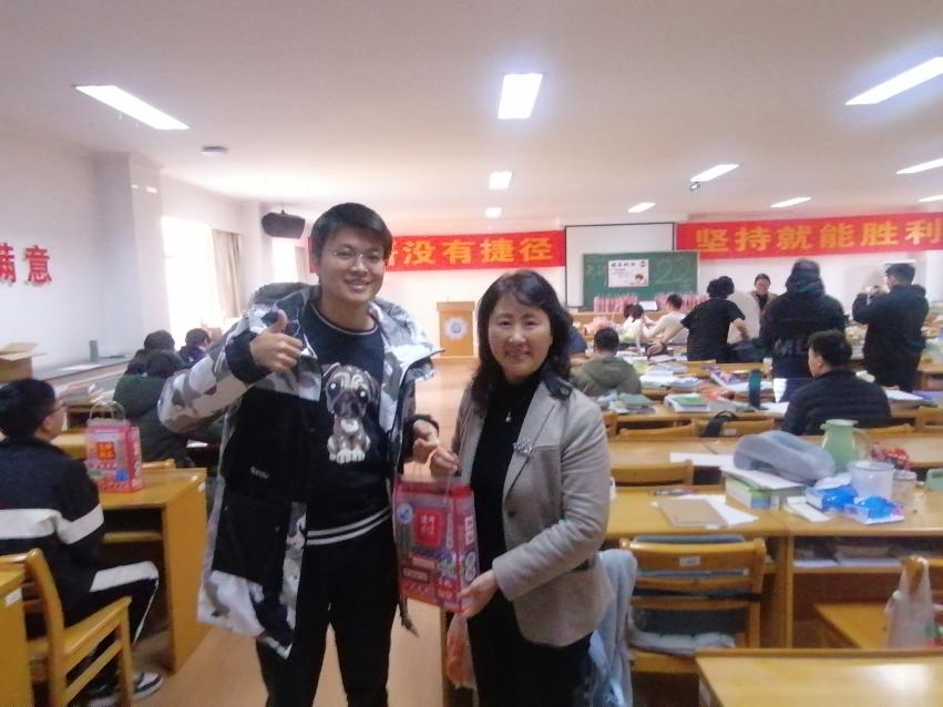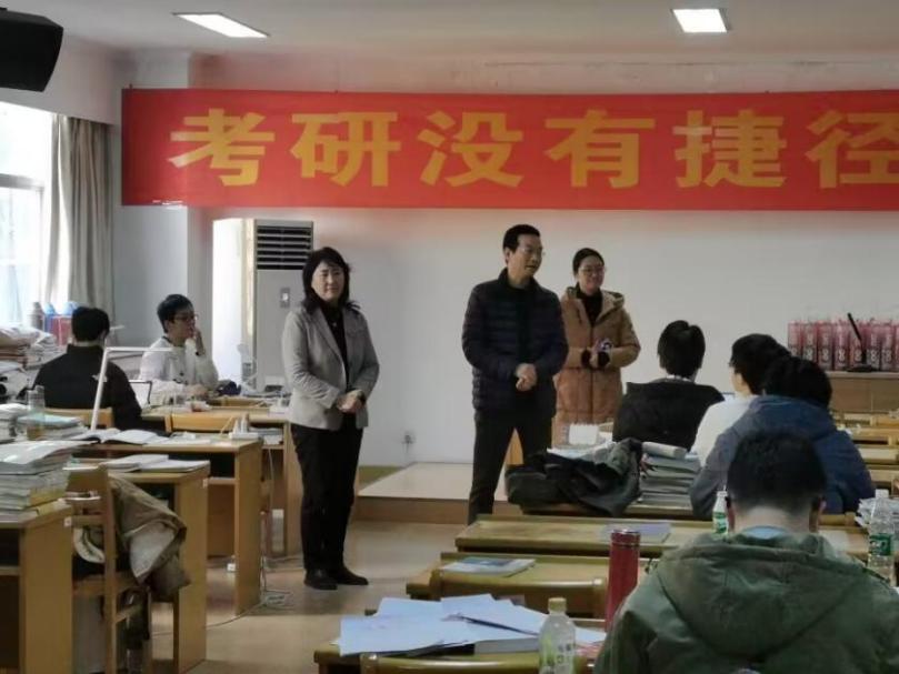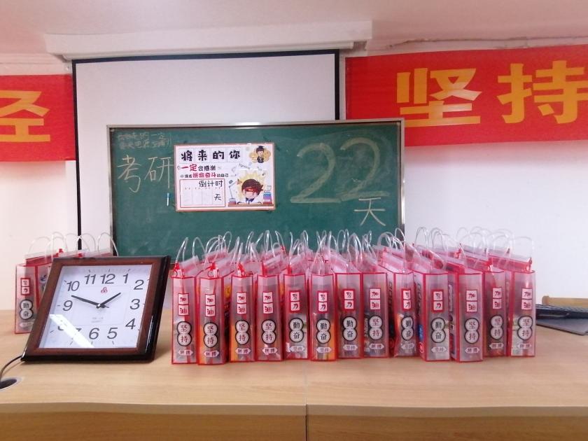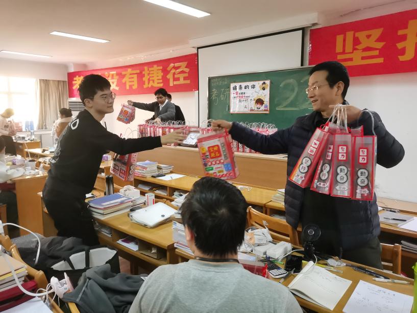 学院领导老师们来到学生座位上,为每一位考研学子发放考研大礼包,勉励同学们继续加油,在即将到来的研究生入学考试中取得满意的成绩。