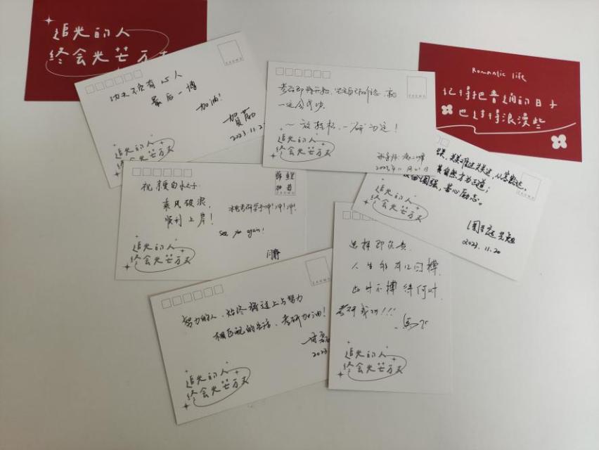 由院领导、班导师、辅导员、班级同学对考研学子寄语的专属定制明信片,祝福考研学子心想事成,一战成“硕”。