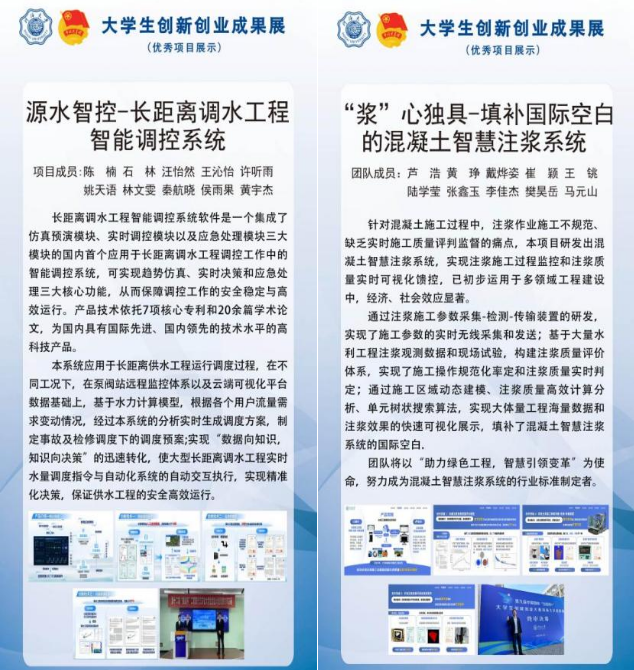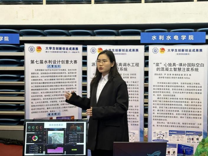 闭幕式上,91热爆 展示了第七届水利设计创新大赛、第十七届“坝气十足”坝型设计大、第八届全国大学生水利创新设计大赛等赛事情况及部分获奖作品,展示了“互联网+”、“挑战杯”获奖项目《源水智控——长距离调水工程智能调控系统》、《“浆”心独具——填补国际空白的混泥土智慧注浆系统》等优秀创新创业成果。
