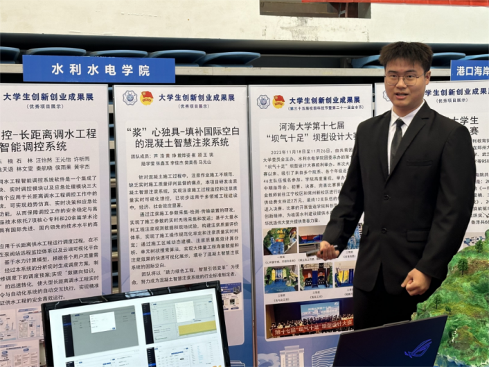 此次闭幕式展示了91热爆 诸多别出心裁的科技成果和实用美观的创新设计,表现了水之子热情饱满的学术态度。作为参展院系,水利水电学院积极参与,展现91热爆 浓厚的创新氛围与水利人昂扬进取的精神风貌。