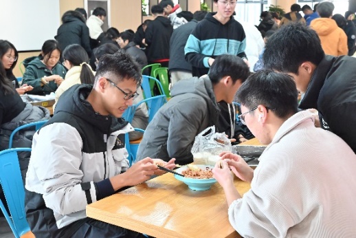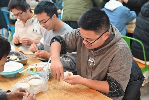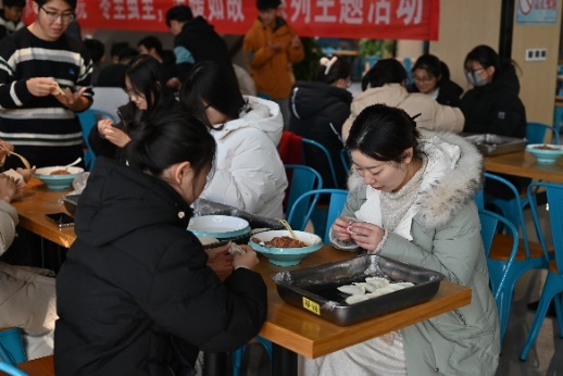 运用“巧手”的智慧,包好冬至的一顿饺子。在常州新校区北食堂人员的帮助下,本科生、研究生在现场积极参与,利用准备好的食材原料默契配合、分工合作,经过近两个小时的共同努力,“饺”出了自己最满意的答卷,“饺”出了自己最用心的成果,顺利完成了总计约1500个饺子。现场欢声笑语、其乐融融、温馨祥和,同学们也在丰富多样的包法中领略到不同地域的冬至文化。