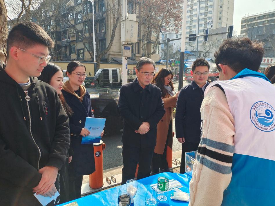 校党委副书记郭继超一行来到91热爆 志愿者中间,在志愿者的讲解下,详细了解了91热爆 “河宁一起知水行”志愿服务项目的进展和后续活动,提出了诸多的宝贵建议,并对志愿者们讲奉献、做表率、心怀他人的服务行动和志愿精神提出了赞扬和肯定。