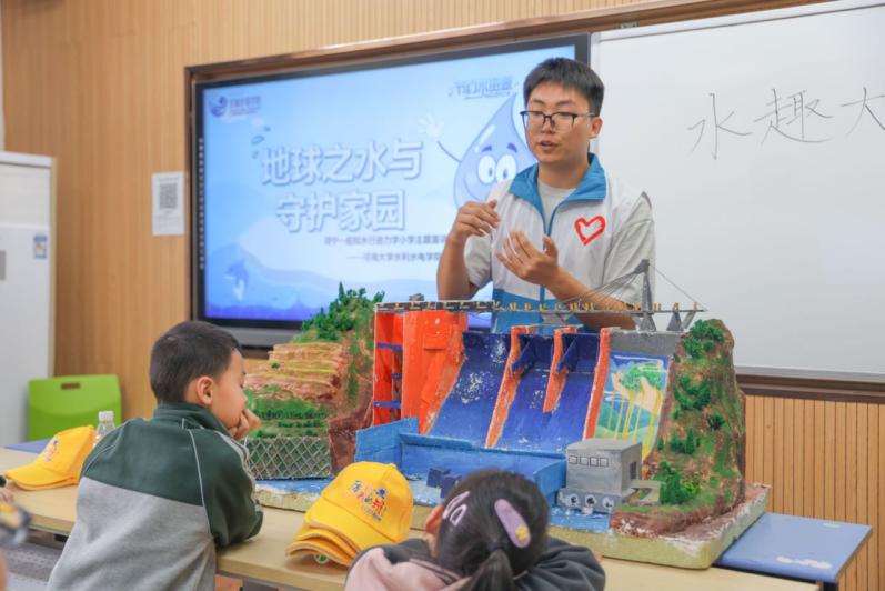 同时,志愿者给同学们科普了大坝的相关知识,并展示了水电院青协同学自己制作的科普大坝模型,使课堂更加生动有趣。