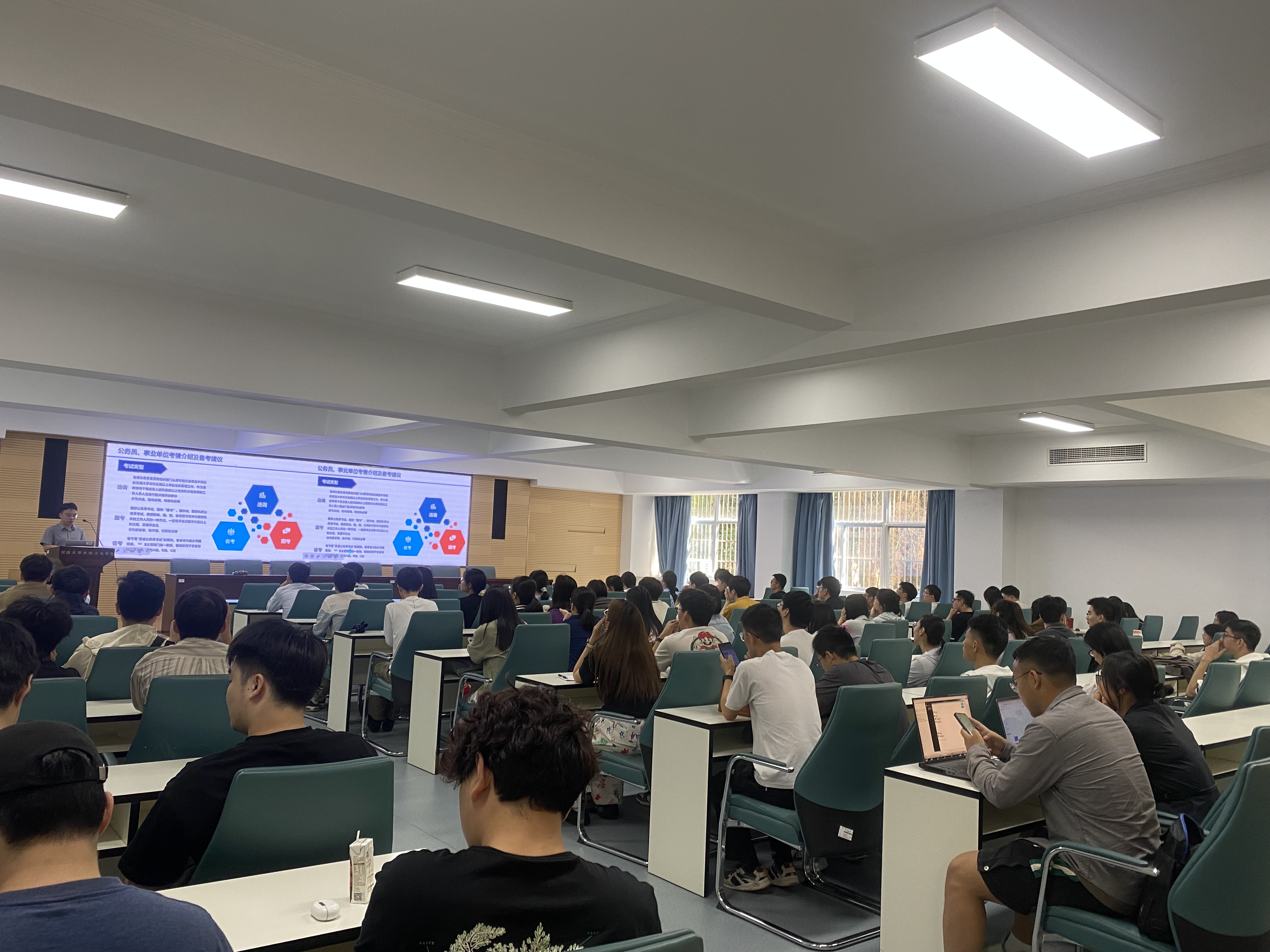 王慧同学以“江苏选调生政策解读与经验分享”为主题展开分享交流,围绕江苏选调政策解读、普通选调考录时间线、个人备考经验分享、考察情况概述、人才引进概况等几方面进行详细阐述,主要以江苏省普通选调为例,介绍其报考条件、选调程序、注意事项个人感悟等方面。王慧同学建议大家根据自身规划选择心仪的岗位,努力争取,不到最后一刻决不放弃,并祝愿大家都可以收获满意的结果。