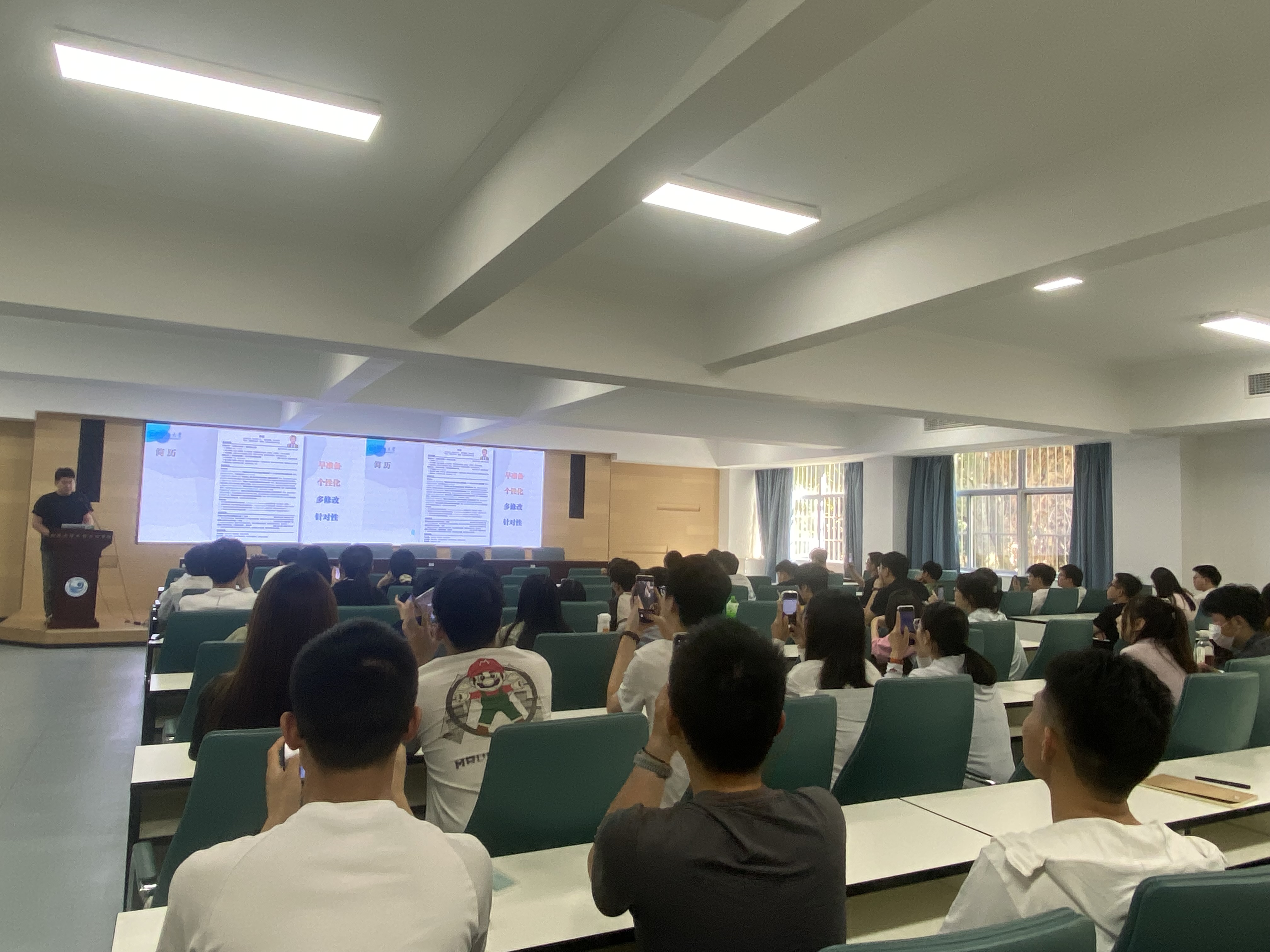 李新同学以“秋招求职及面试经验”为主题展开分享交流,结合自身经历就职业规划、信息搜集、简历制作、面试准备等方面做了详细分享,他建议师弟师妹们根据自身特点深思熟虑求职路线,权衡各个选择的利弊并早做决定,在制作简历时注意个性化和针对性,准备面试时务必做充分准备且做到大方得体、真诚自然。最后李新同学希望大家可以正视求职过程中的迷茫与焦虑,永远保持乐观向上热爱生活的态度,坚持去了解自己并敢于为自己开路。