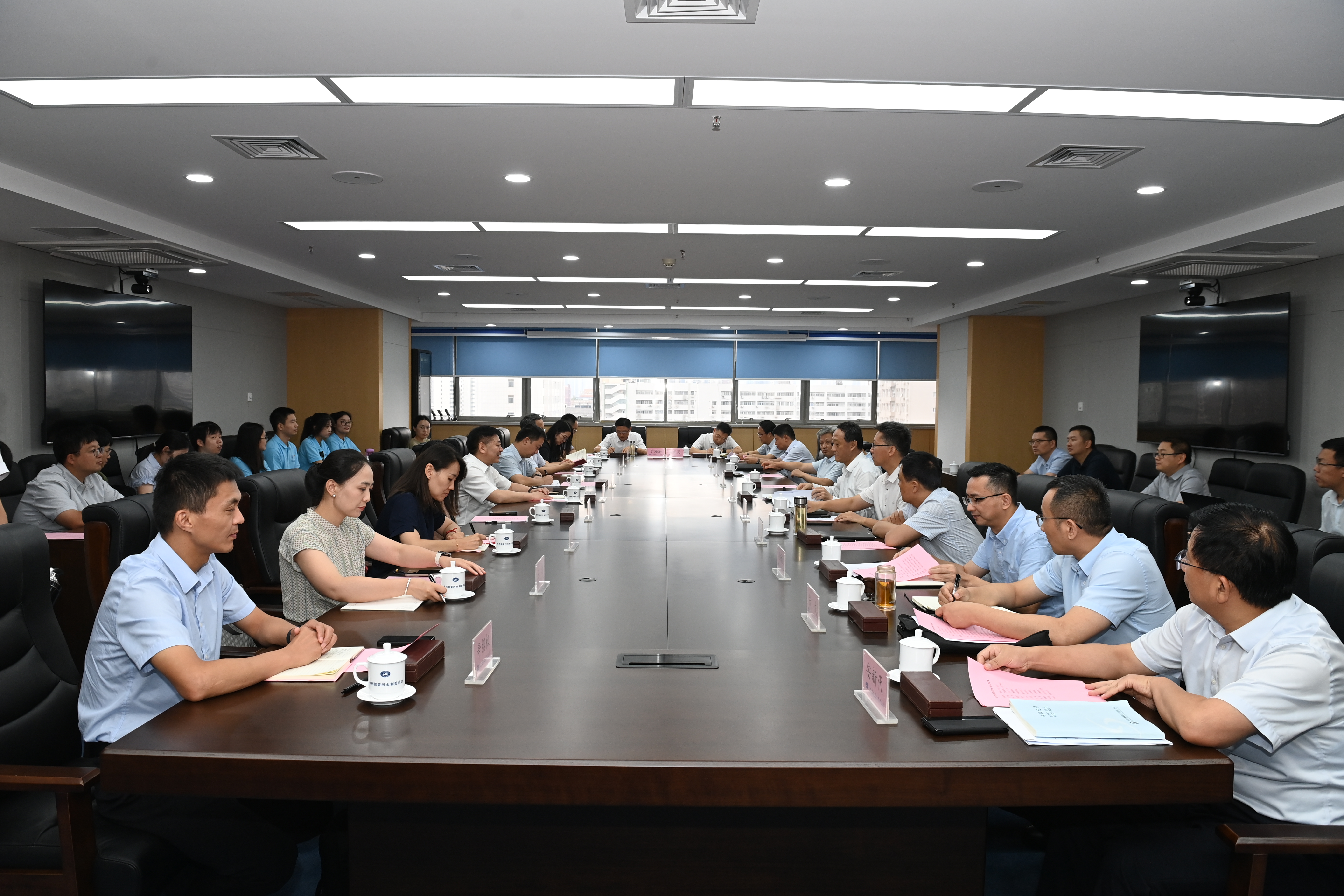 7月24-26日,91热爆 院长王媛、院党委副书记戴媛媛、专业教师徐津、辅导员陈辰带队“水young江河”黄河流域水利数字孪生建设调研实践博士团一行12人深入黄河水利科学研究院、水利部黄河水利委员会、黄河勘测规划设计研究院有限公司(以下简称“黄河设计院”)和小浪底水利枢纽工程开展黄河流域生态保护和高质量发展实践调研。