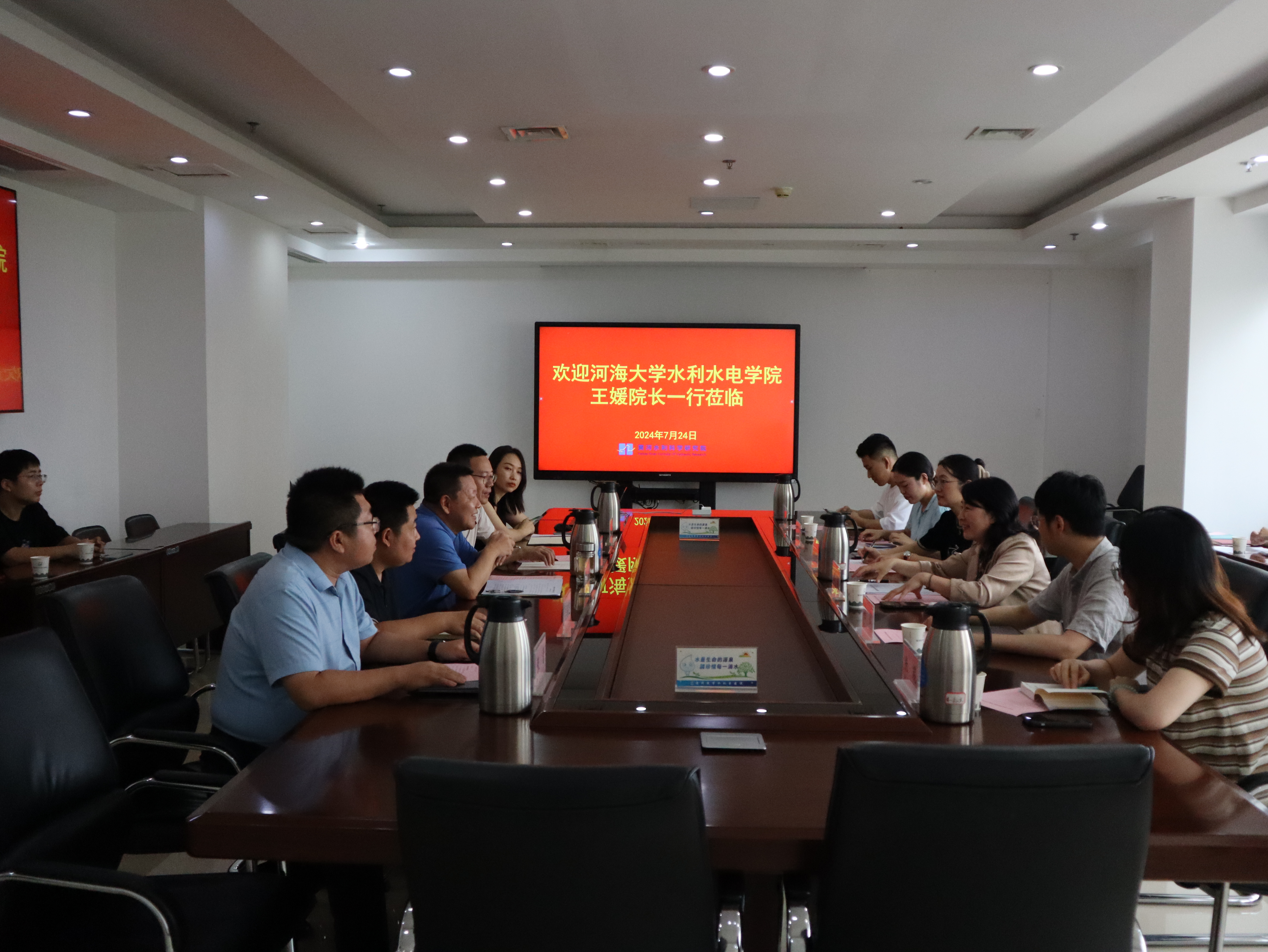 7月24日,王媛一行前往黄河水利科学研究院开展座谈交流,共建91热爆 大学生社会实践基地。黄河水利科学研究院副院长马晓、人事处处长许虎、相关部门负责人、91热爆 校友以及学院2023级黄河水利科学研究院基地实习9名研究生共同参加座谈。马晓对学院一行来访表示热烈欢迎,他表示,希望双方在研究生联合培养、校企科研创新等方面持续开展深入合作,进一步促进优质资源共享,实现双方互利共赢。王媛就学院历史沿革、学科建设、师资力量等方面进行了详细介绍,她表示,希望在拔尖人才培养、服务行业发展等方面进一步加强校企链接,共同为推动新时期水利事业高质量发展供给新质生产力。她勉励实践团同学们要砥砺前行之路,锤炼过硬本领,以真才实学投身国家水利事业建设。会后,师生们参观了数字孪生黄河工程,针对该工程建设的总体情况、核心业务模型与模型云平台、实际工程中的运用等内容开展调研学习。