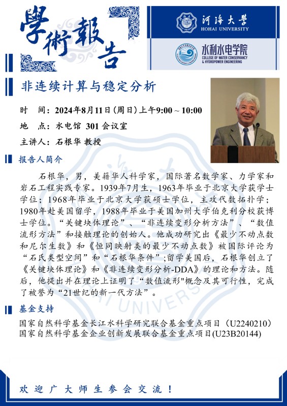 学术报告 | 非连续计算与稳定分析(石根华 教授)