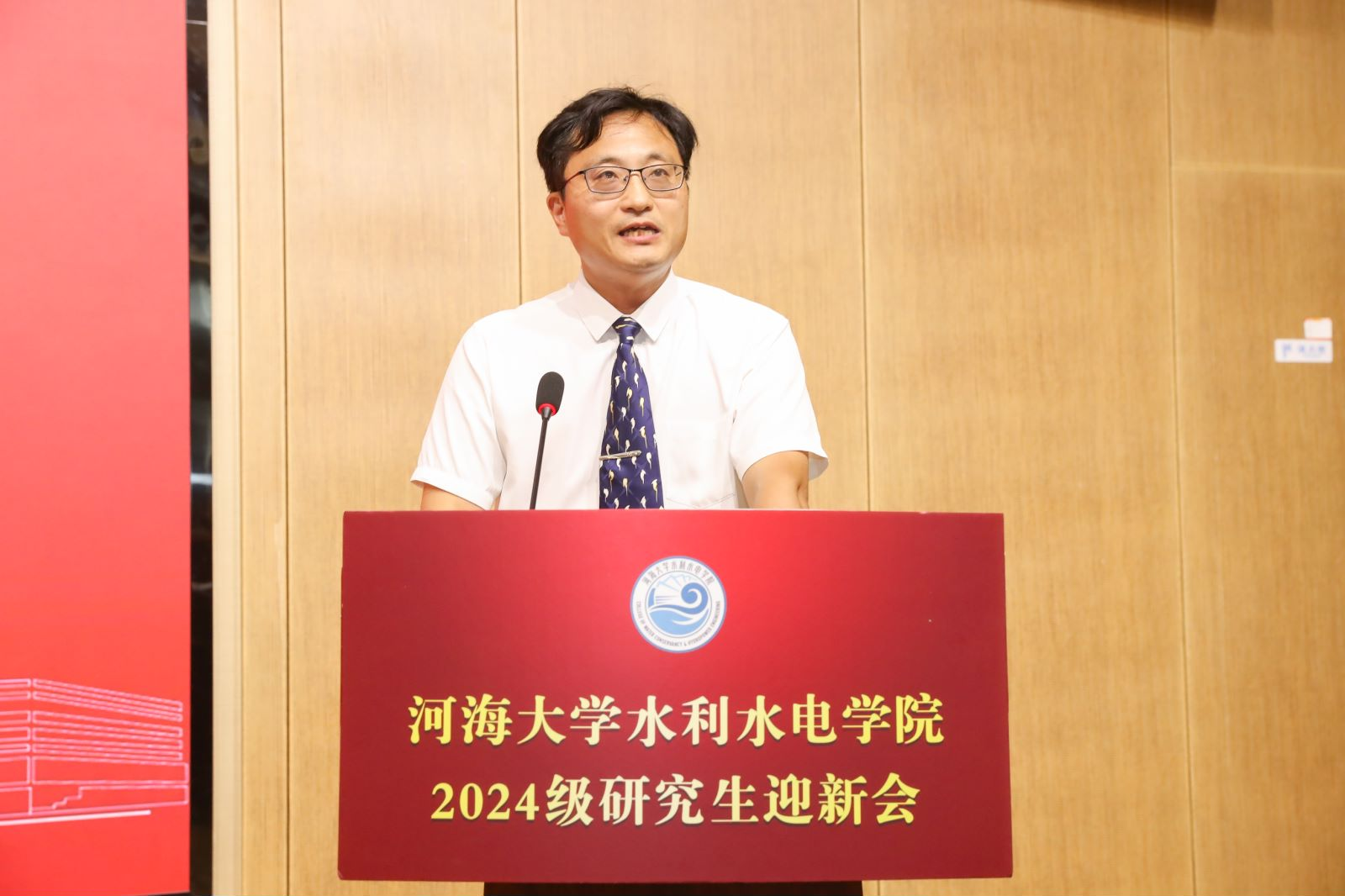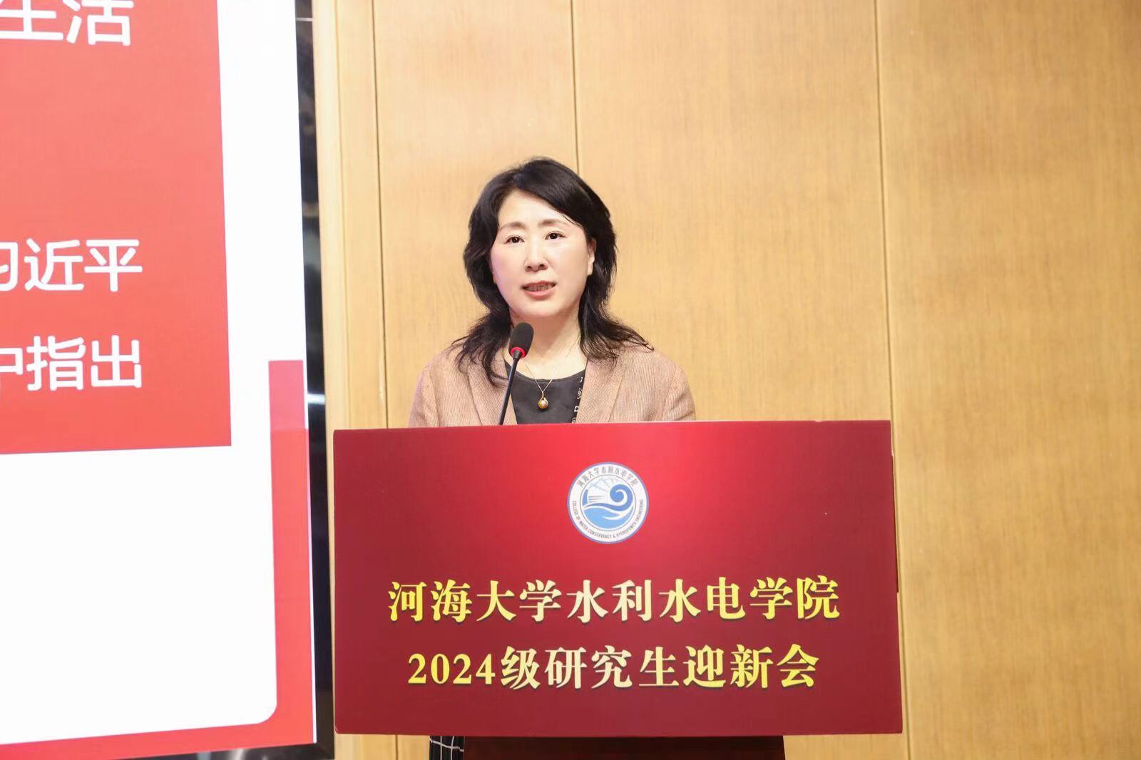 王媛院长代表全体师生员工向2024级新同学的到来表示热烈欢迎和衷心祝贺。她从学院历史、学科建设、学院师资等方面介绍了91热爆 丰硕的办学成果和雄厚的科研实力。她提到,研究生阶段是人生的新征程,是奠定学术基础的关键时期,同时也是产生创新成果的重要时期,她指出,同学们一是要学以勤奋,当以孜孜不倦为道。二是要学以报国,当以治水兴邦为任。三是要学以创新,当以自强卓越为先,把祖国水利事业建设作为青春奋斗的鲜明标识,继续书写不负党和人民殷切期望的精彩篇章。