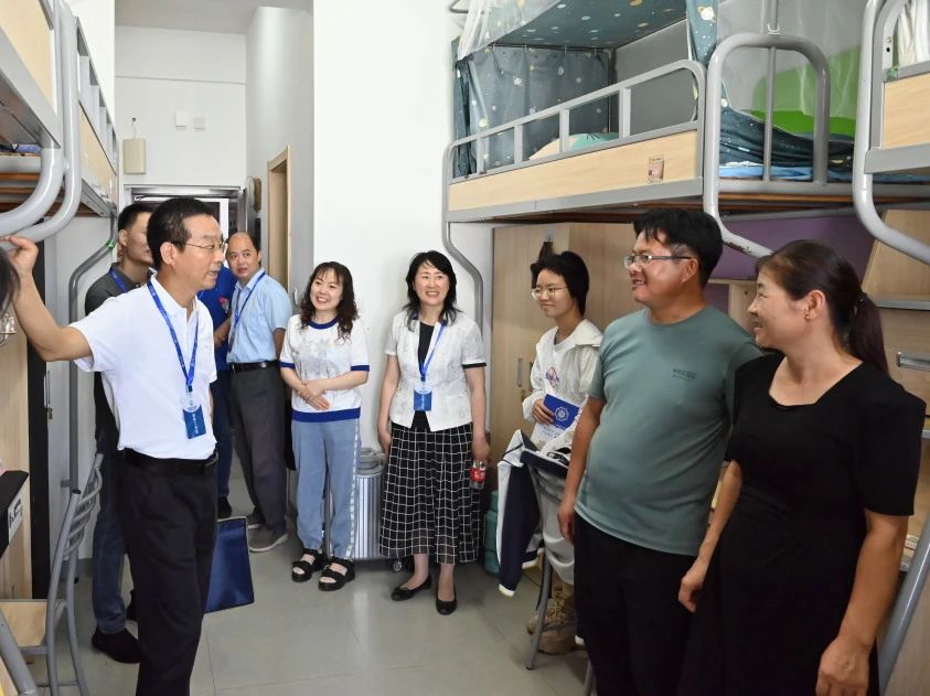 深入新生宿舍,学院领导向刚刚踏入校园的新同学们致以热烈的欢迎和亲切的关怀。在宿舍内,领导们与新生们面对面交流,细心询问每位新生的入学初体验,耐心倾听他们关于新环境的适应情况与个人基本情况的介绍。在得知同学们对新生活的期待与困惑后,领导们不仅给予了充分的理解和鼓励,还勉励大家要迅速融入新环境,以饱满的热情和坚定的信念,奋力拼搏,勇于探索,在未来的大学生活中书写属于自己的精彩篇章,创造无愧于时代的辉煌未来。