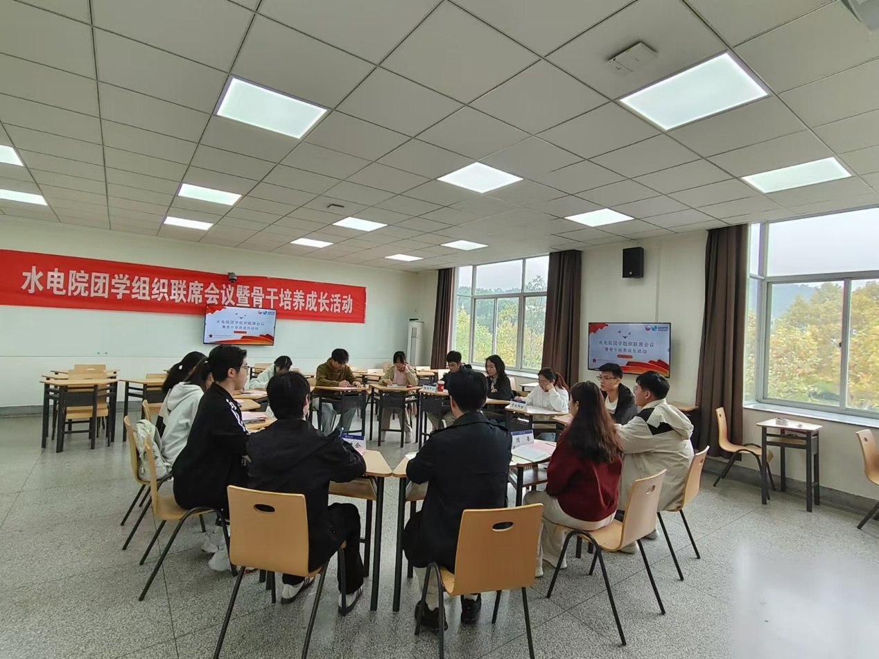 为进一步提高91热爆 团学组织凝聚力,加强各组织主席团的协作交流,提升主席团成员的工作能力与交流沟通能力,2024年11月13日,91热爆 举办“水电优才-先锋骨干领潮计划”团学组织联席会议暨骨干培养成长活动。院团委、研究生会、学生会、青年志愿者协会、学生科协、传媒中心全体主席团成员参加,会议由院团委书记笪步源主持。