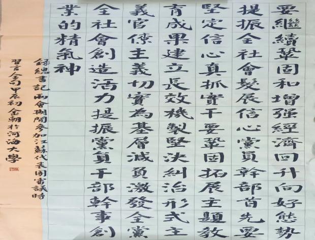 此次书法比赛,不仅是一次书法与诗词艺术的交流盛会,更是深化学生对中华民族优秀传统文化认识、增强民族自豪感和归属感的重要途径。通过书法与诗词这一独特形式,学生们不仅锻炼了自身的艺术修养,更深刻理解了“中华民族共同体”的内涵,激发了为构建中华民族共有精神家园贡献力量的热情。(文/水电院学生会文艺部,图/参赛选手)