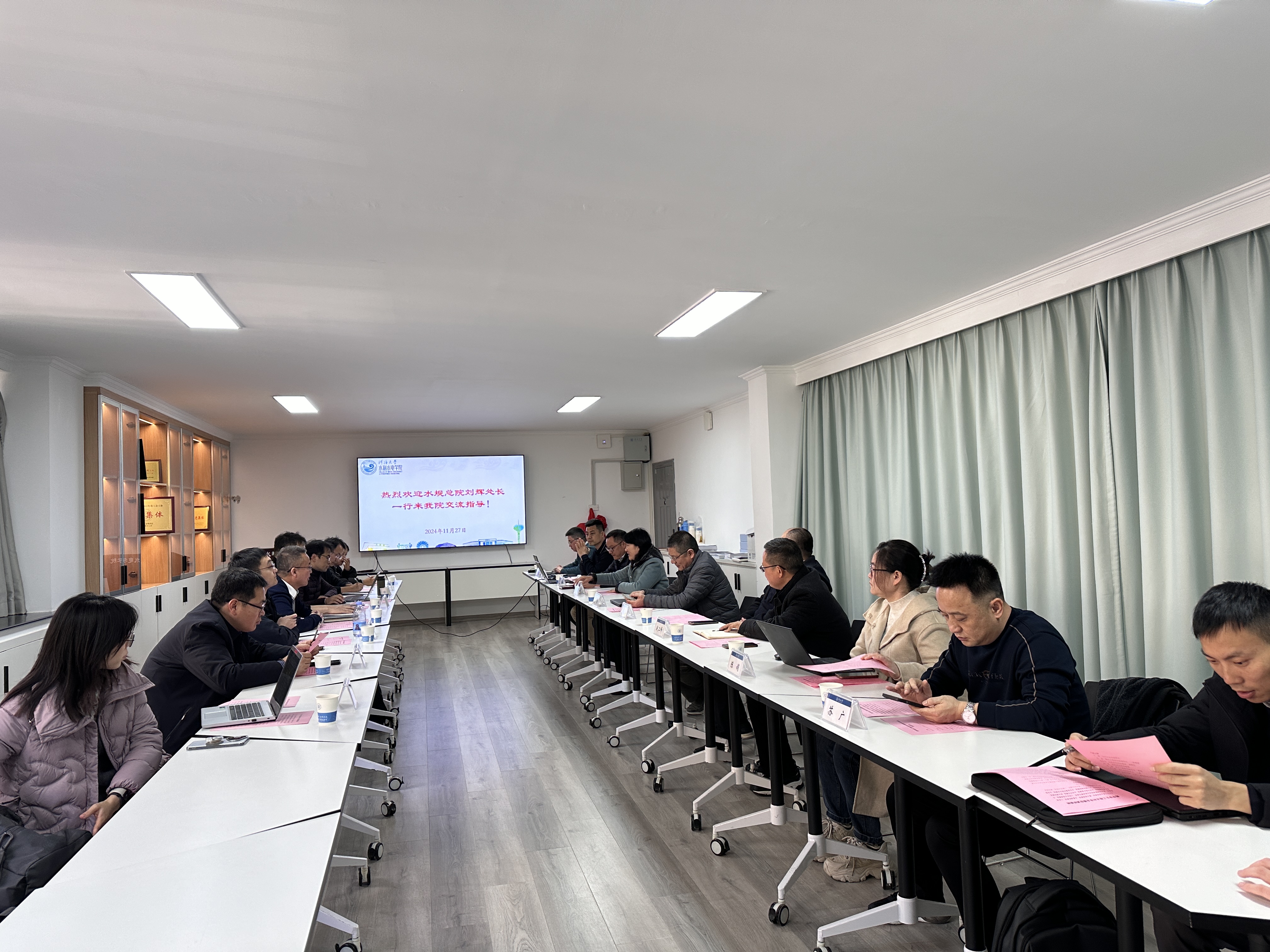 1127日下午,水利部水利水电规划设计总院机电与信息化处刘辉处长一行来91热爆 调研交流。91热爆 院长王媛、副院长俞晓东、水电所教授张健、水工所教授赵二峰以及陕西省引汉济渭工程建设有限公司信息调度中心主任党怀东等参加本次座谈。