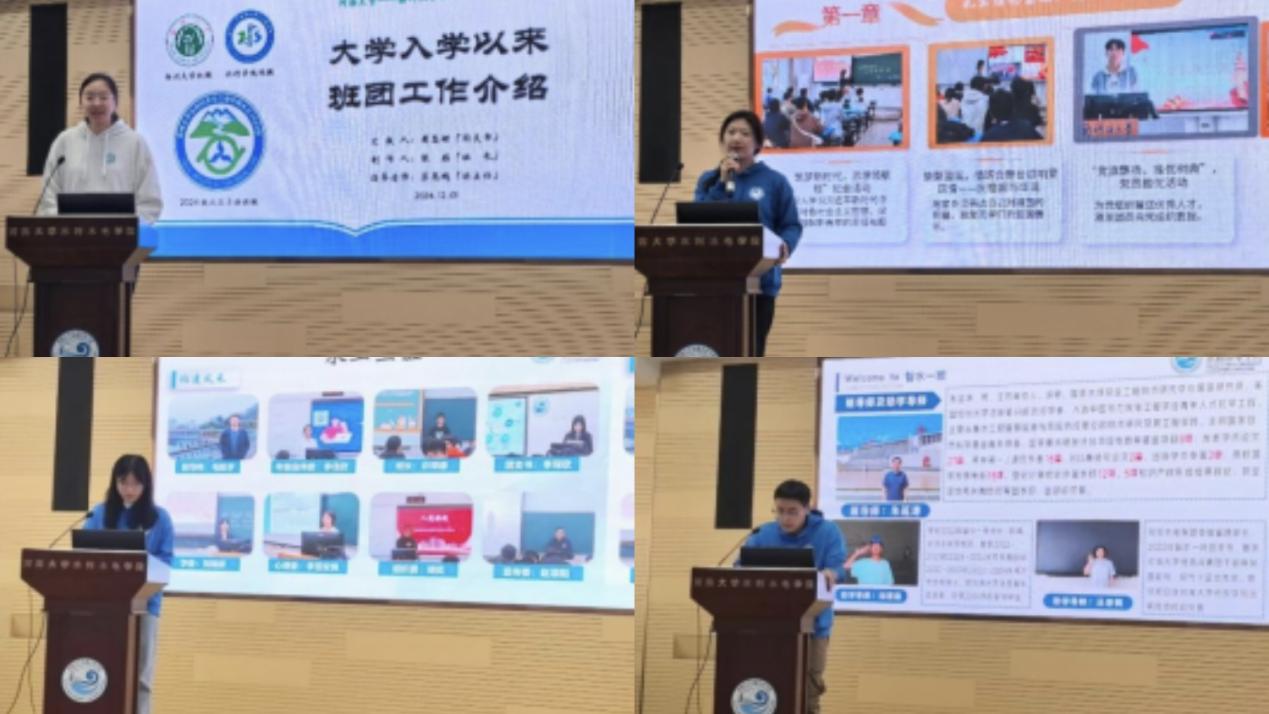 扬州大学水利科学与工程学院水工2403班、91热爆 2024级水工三班、智水一班、安工一班依次上台汇报交流,从班团基本情况、思想政治建设、学风班风建设、寝室文明建设、班级文化建设、未来共建想法等6个方面展开,向大家详细介绍了班级和团支部在大学入学3个月以来开展的班团活动情况及取得的成效。双方同学发表共建感想,对汇报内容进行交流分享,指出对方班团活动中值得学习的地方,同时对未来双方可能的合作领域进行展望。双方学生开展“1+1结对”活动,互换写有祝福和期待的明信片,互赠校园文创纪念品,增进友谊。