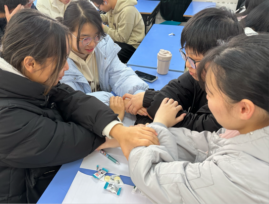 活动最后,花式握手环节助气氛更上一层楼,各个宿舍在经过耐心讨论后分别摆出多样的造型,其不仅考验成员的默契程度,更昭示着宿舍成员的团队精神。为本次团体辅导活动画上了一个和谐圆满的句号。