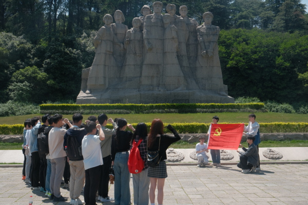 在烈士群像下,同学们庄严肃立,重温入党誓词。那巍峨的群像,宛如历史的见证者,静静凝视着我们。他们用热血铸就了不朽的丰碑,用生命诠释了对党的忠诚与担当。面对党旗,我们高举右拳,字字铿锵,誓言声在空气中回荡。那一刻,仿佛穿越时空,与先烈们的心灵相通。大家深知,这誓言不仅是对党的承诺,更是对未来的责任。在新时代的征程中,将传承先烈精神,不忘初心、牢记使命,为实现中华民族伟大复兴而不懈奋斗,让先烈们的热血在我们手中绽放新的光芒。