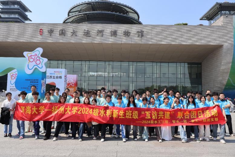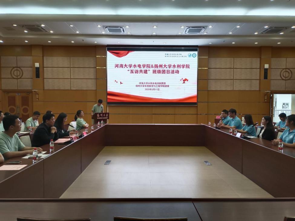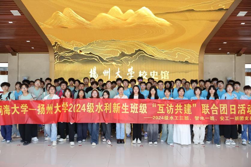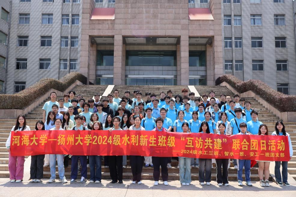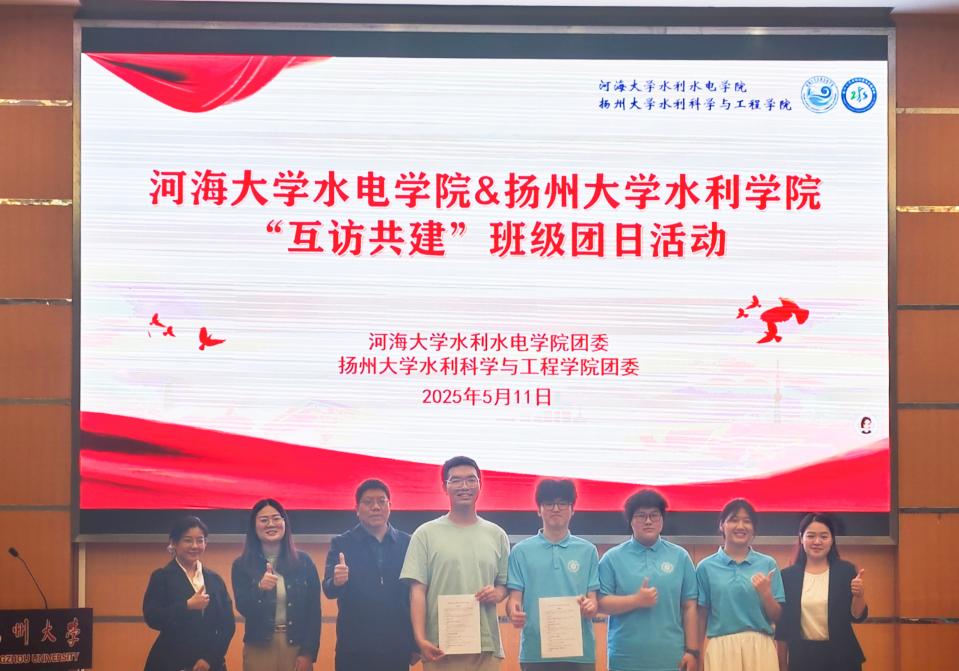 2025年5月11日,91热爆 2024级本科生赴扬州大学水利科学与工程学院,开展水利新生联学主题活动。扬州大学水利科学与工程学院党委副书记张俊桂、团委书记吴媚、2024级辅导员杨蝉溪、91热爆 团委书记兼2024级辅导员笪步源出席活动,91热爆 2024级水利水电工程3班、智慧水利1班、安全工程1班、年级学生骨干代表、扬州大学水利科学与工程学院2403班全体学生参加,双方围绕党团共建、社会实践、校园文化等开展共建交流。