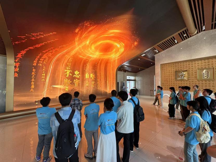 比赛结束后,同学们怀着好奇与期待的心情,在讲解员的引领下踏入扬州大学校史馆。在八个主题鲜明的展厅中,泛黄的老照片无声诉说着学校自创办以来的风雨征程,陈列的毕业证书、手稿、科研成果等珍贵展品,生动展现出学校在不同历史时期的发展脉络。大家时而驻足凝视,细细品读展牌上的文字;时而轻声交流,分享着自己的感悟。