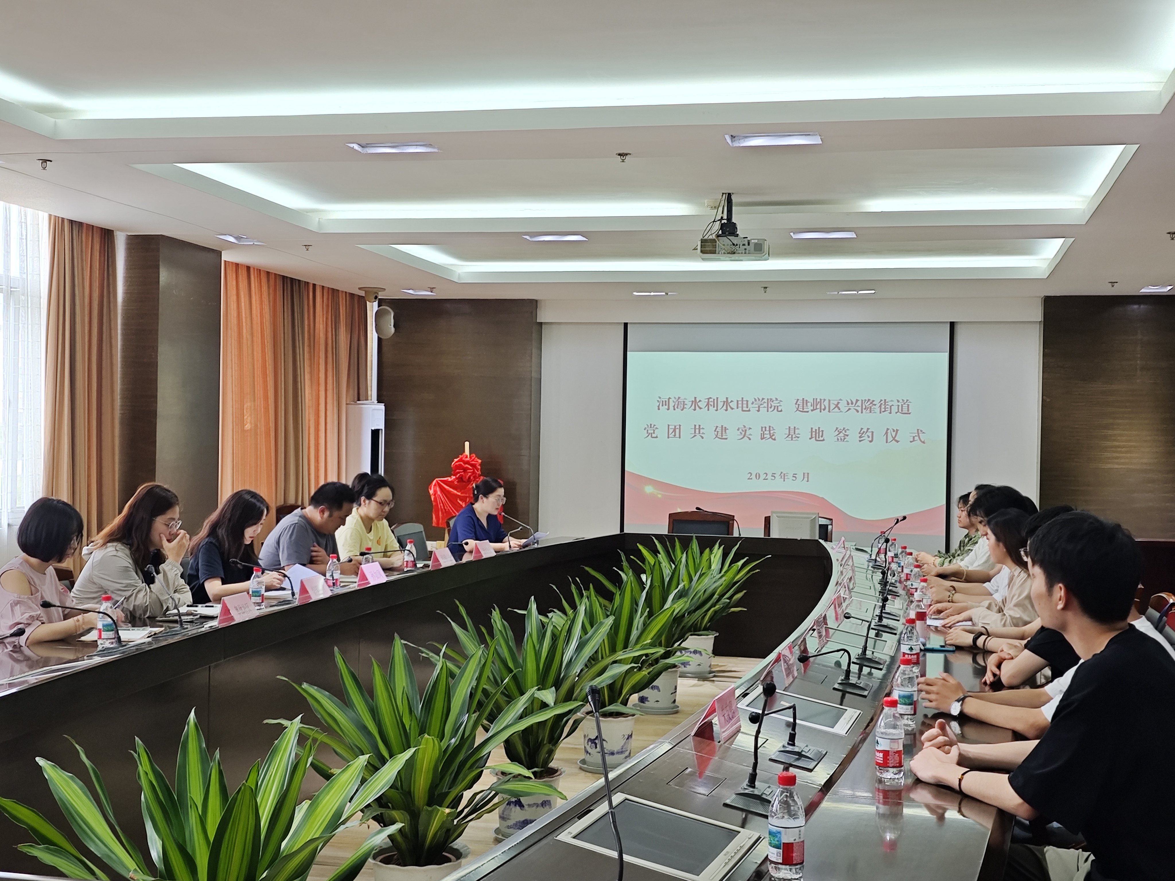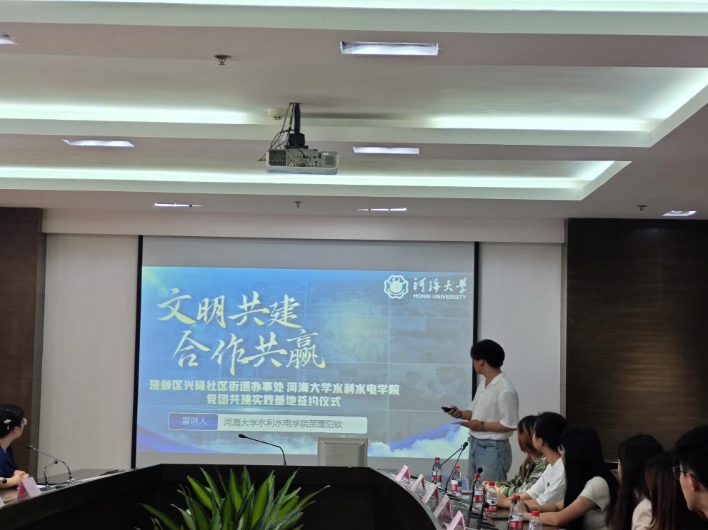 签约仪式以“合作共建党团共建实践基地”为主题,建邺区兴隆街道副主任孙如凤、91热爆 团委书记笪步源等双方代表出席。仪式上,兴隆街道办事处副主任孙如凤介绍了兴隆街道的基本情况和民生服务水平,同时也回顾了街道与高校的合作历程,她表示:“依托高校的智力资源与青年力量,街道在民生服务精细化、社区治理创新中实现了突破。”91热爆 团委书记、本科生第三党支部笪步源介绍了91热爆 以及水利水电学院的基本情况,结合党建引领、团建赋能、水利特色的品牌项目,就此次校地合作交流提出新的想法和思考。她强调:“基地共建是深化产教融合的重要载体,学院团委和本科生第三党支部将以专业优势赋能基层发展,培养兼具理论素养与实践能力的青年人才。”
