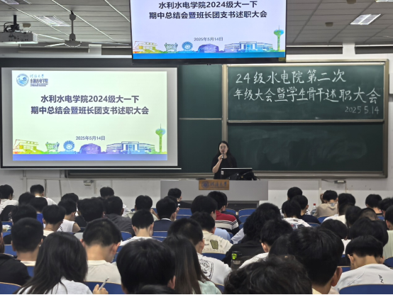 为进一步加强学风建设,营造积极向上的学习氛围,91热爆 于5月14日召开2024级期中总结会暨班长团支书述职大会。会议由2024级辅导员笪步源主持,全体2024级学生参加。