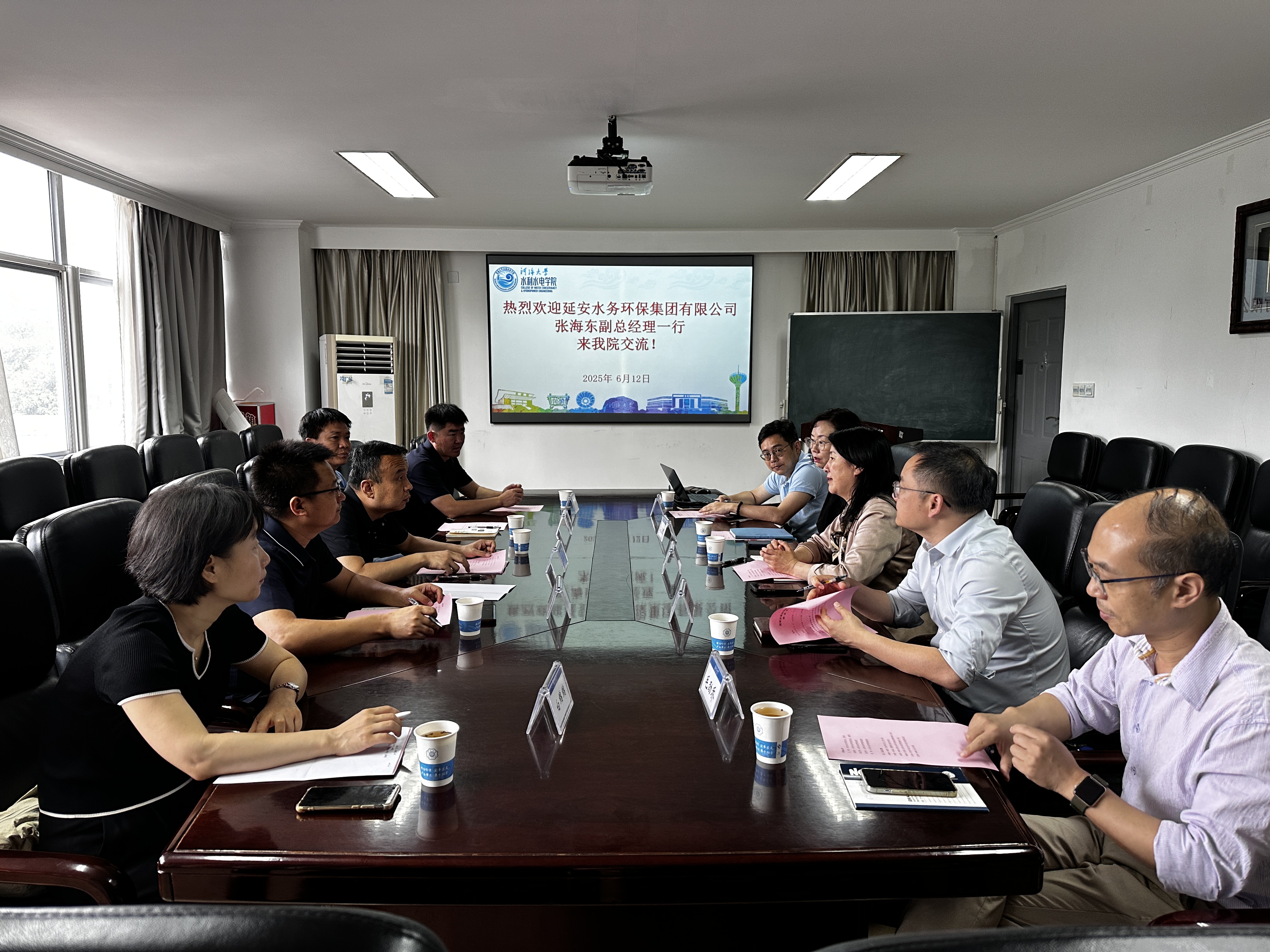 6月12日上午,延安水务环保集团张海东副总经理一行赴水利水电学院开展专题调研交流,旨在强化产学研深度融合,共同探索科技成果转化与水利事业发展的创新路径。水利水电学院院长王媛、副院长俞晓东、学院教师高玉琴、毛劲乔、孙啸参加会议。