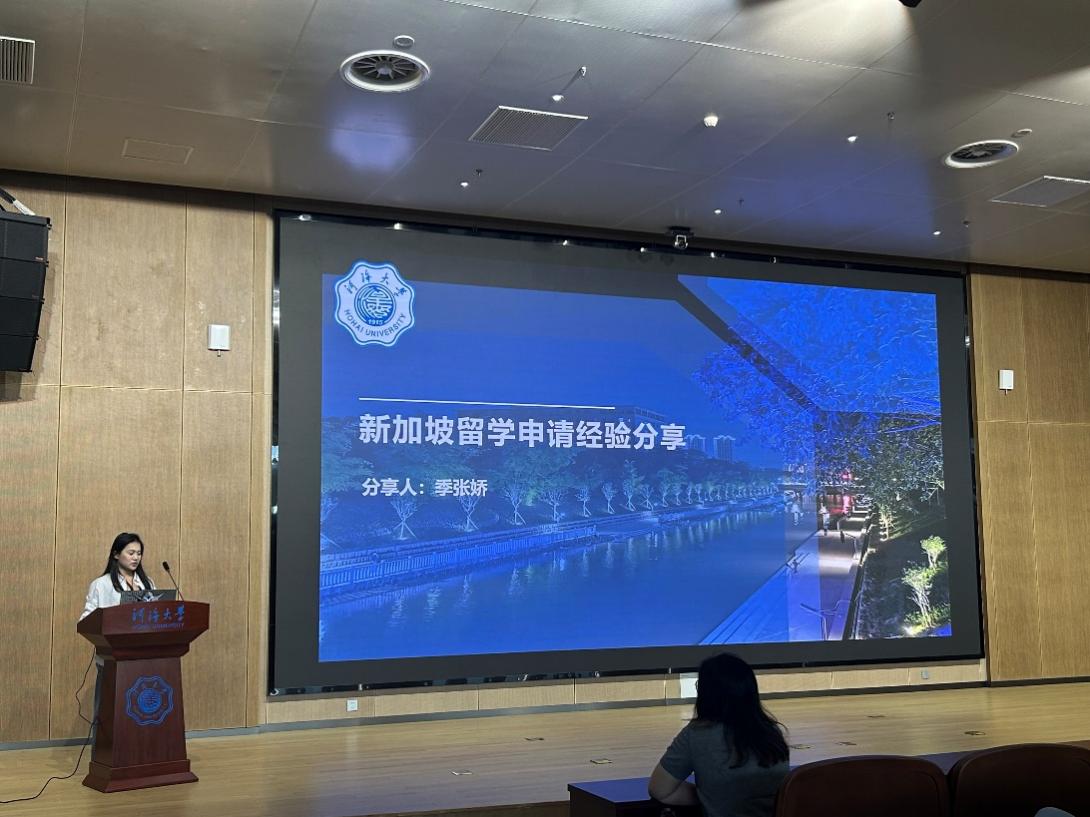 境外升学代表季张娇学姐,将进入新加坡南洋理工大学深造,她从语言准备、文书撰写、海外申请流程等方面详细讲解,鼓励有意出国的同学们广泛了解信息,勇敢追梦。