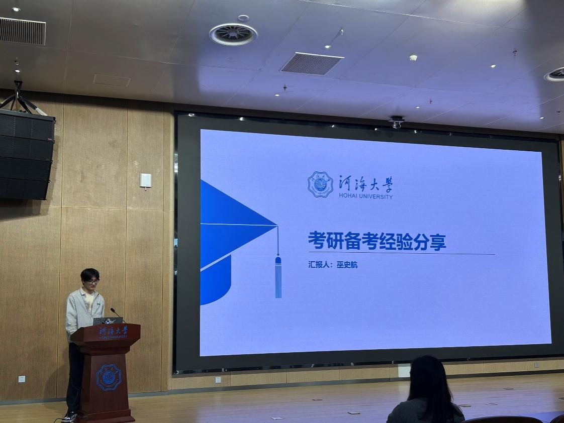 考研学硕代表巫史航学长,以400高分录取至本校水力学与河流动力学,重点分享了公共课复习技巧与专业课备考经验,提醒同学们“找到适合自己的节奏,才能事半功倍”。