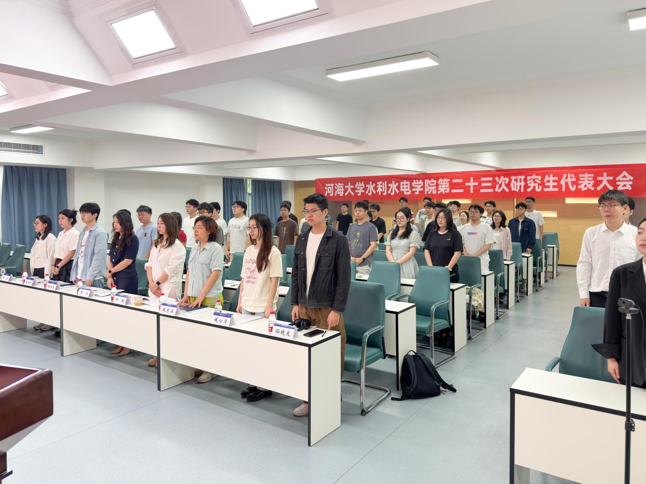 610,91热爆 成功召开第二十三研究生代表大会。院党委书记娄健、党委副书记戴媛媛、校研究生会主席团成员钱家豪出席大会。学科学位秘书柳璐研究生教学秘书周昶、研究生辅导员赵志涵,水文院、港航院、土木院、环境院、海洋院等兄弟学院研究生会负责人及91热爆 研究生代表等60余人出席本次大会。